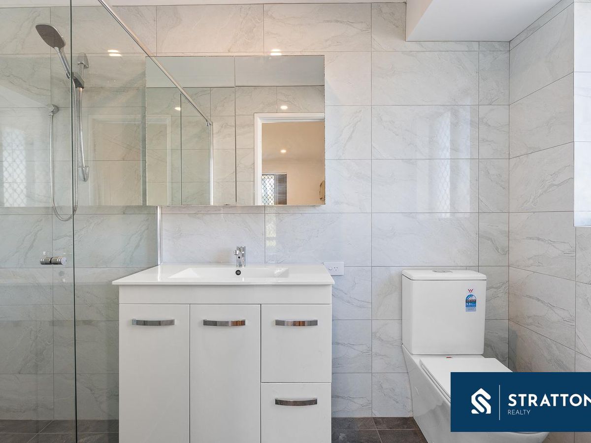 The master bedroom offers a peaceful retreat with carpet flooring, double door built-in robes, and a private ensuite with shower and toilet. Three additional bedrooms are generously sized, all with carpet flooring and built-in robes-two of which include wall-mounted air conditioners, and one features mirror sliding doors.