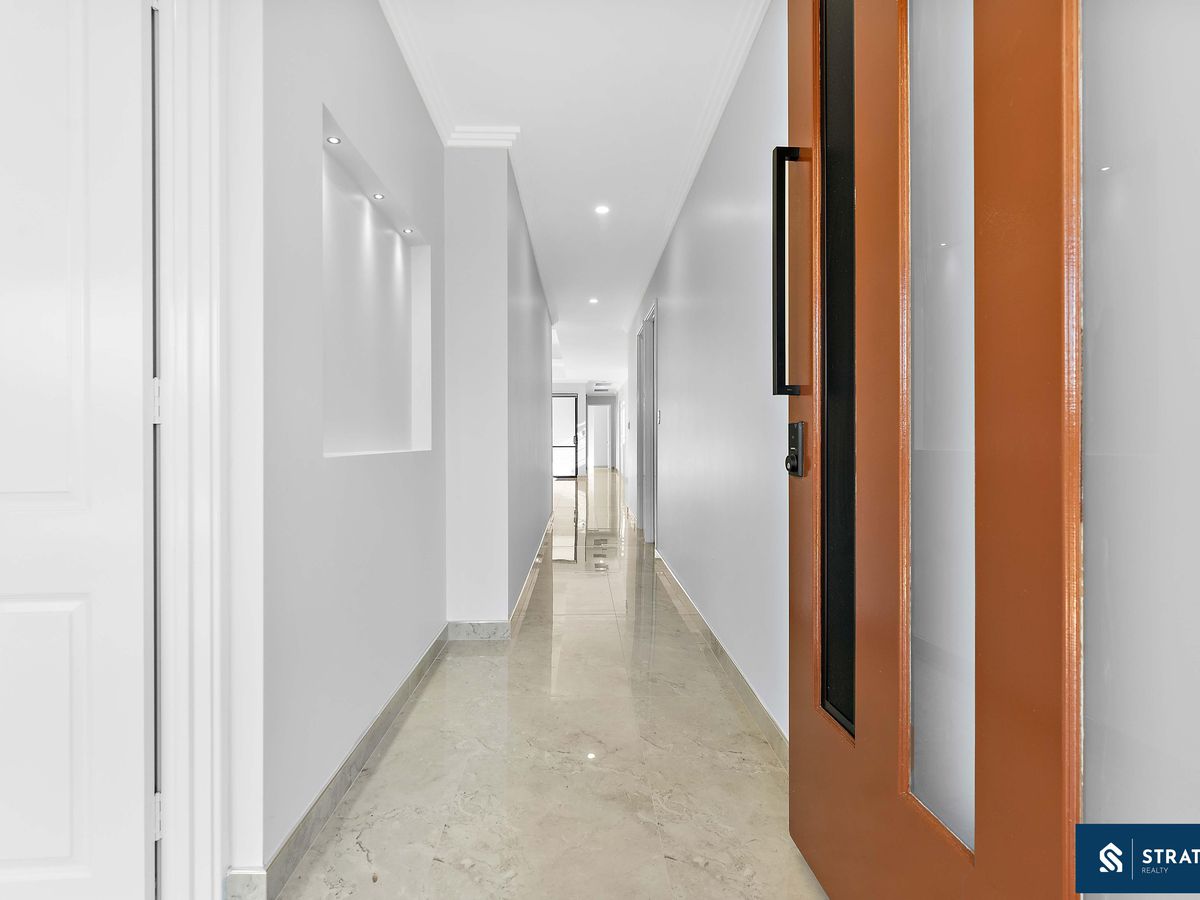 Behind secure entry, landscaped gardens and a custom security door set the tone for the quality within. Step inside to discover soaring 31c ceilings (with 33c recessed features) and all doors at 28c, oversized 600x1200mm porcelain tiles, and an abundance of natural light that highlights the home's refined finishes.