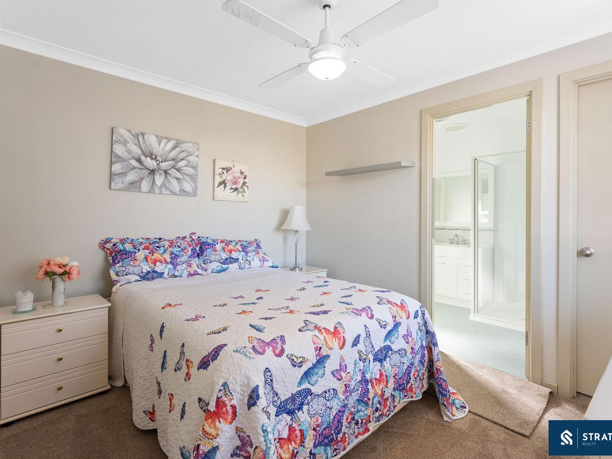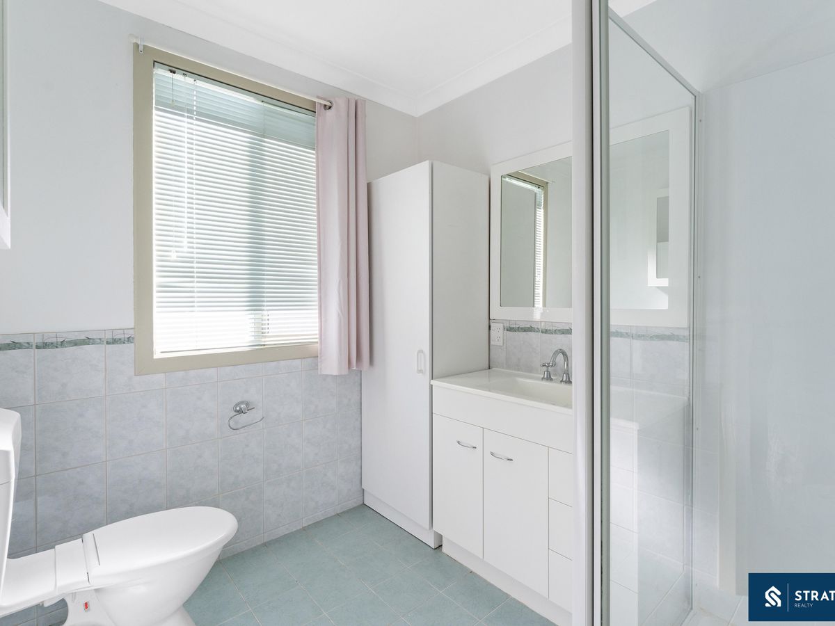 Outdoors, the big backyard is made for low maintenance and family fun, featuring artificial lawn, flowering gardens, a garden shed and plenty of space for kids to play.
