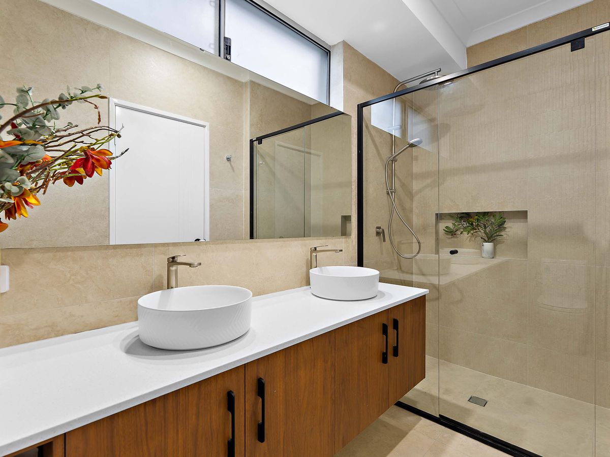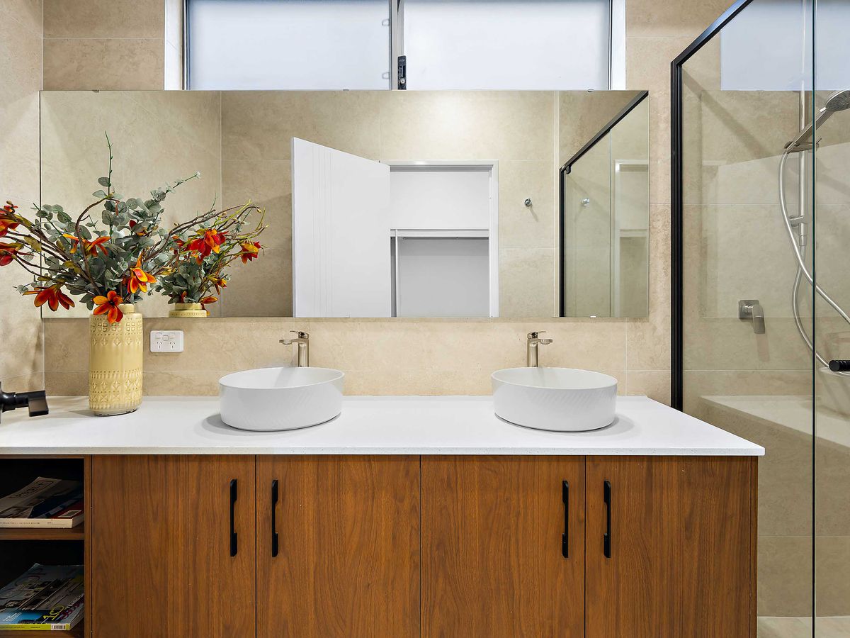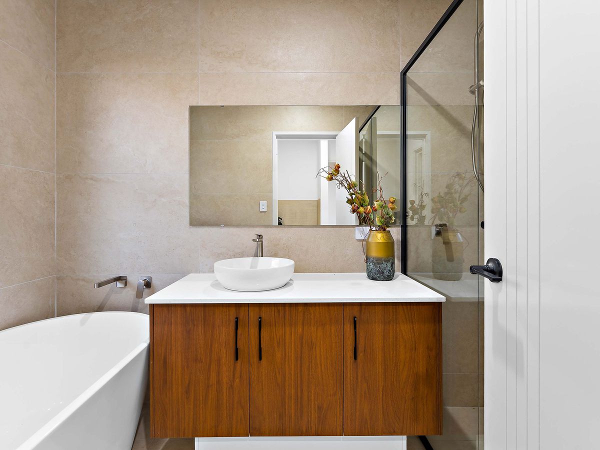 Every detail has been meticulously crafted - from the fully tiled bathrooms with custom vanities and a freestanding bathtub, to the premium tapware, recessed ceilings, and luxury blinds and curtains. The home is equipped with reverse cycle air-conditioning and downlights throughout, ensuring year-round comfort and style.