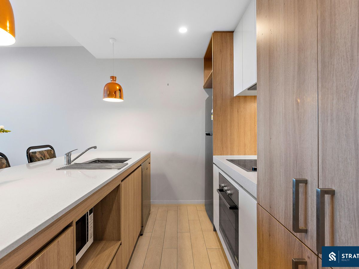 The open-plan living area welcomes you with abundant natural light and seamless flow to a private balcony, ideal for entertaining or simply relaxing after a long day. The kitchen impresses with stone benchtops, mirrored splashbacks, quality stainless steel appliances and generous storage, making everyday cooking a pleasure.