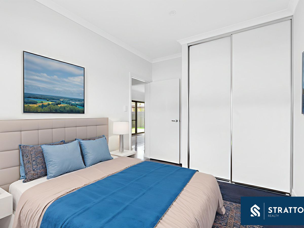 Behind a secured gate entrance, a welcoming double front door opens to light-filled interiors anchored by an open-plan living/kitchen/meals domain. The living area is framed by large windows that invite abundant natural light, flowing effortlessly to a front-side courtyard with alfresco, artificial lawn, and low-maintenance surfaces-a perfect spot for kids to play and weekend entertaining.