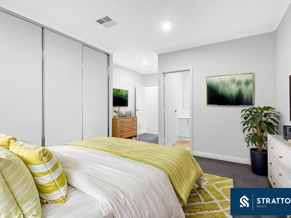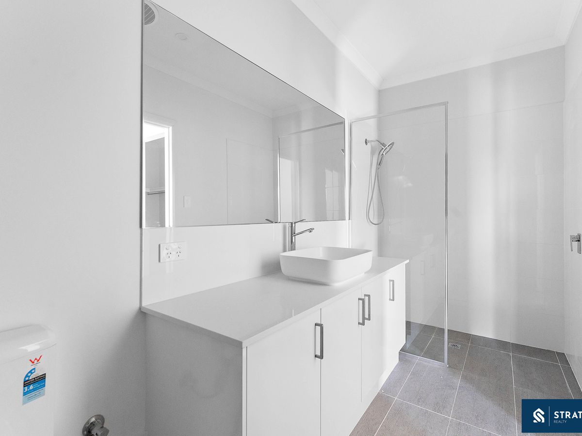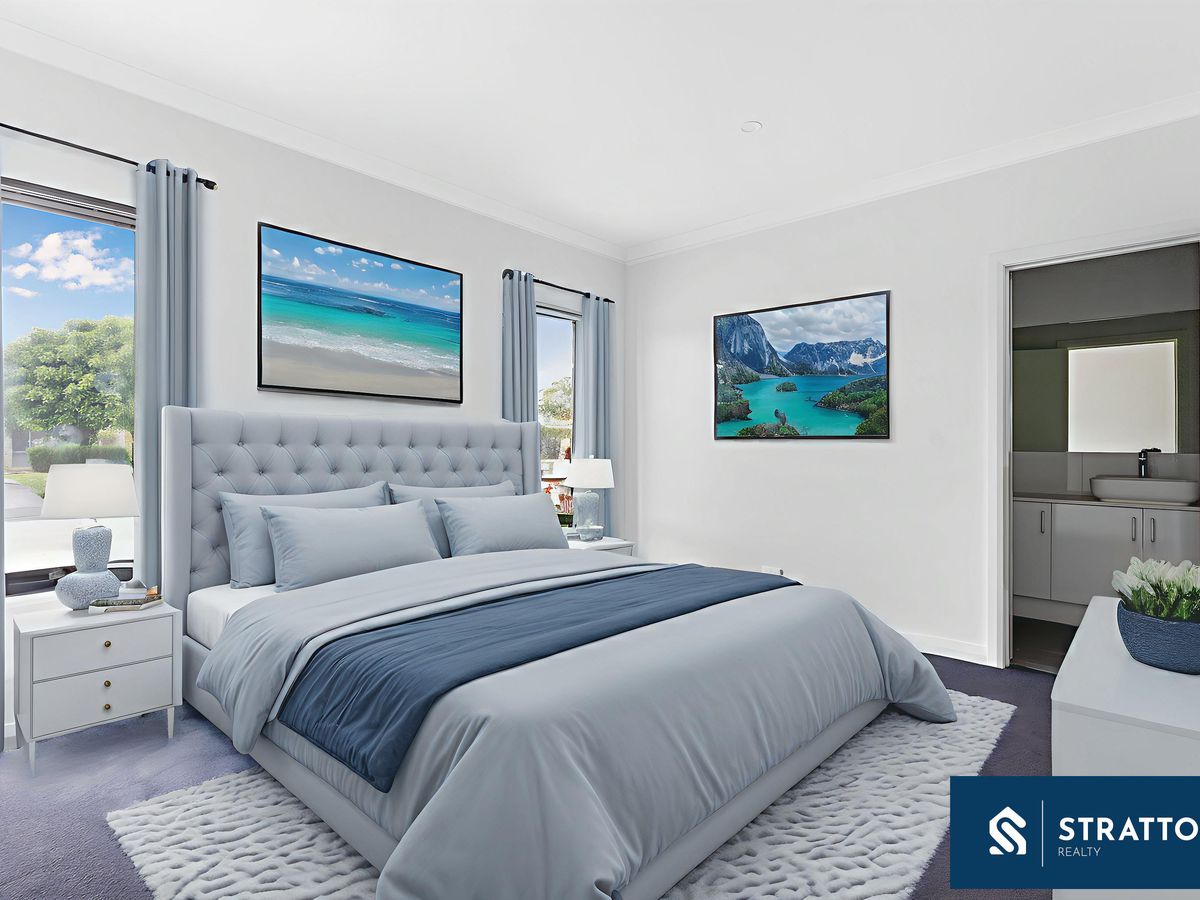 Equally impressive in quality and layout, Lot 4 centres around an airy open-plan living/kitchen/meals space. The living room connects to the backyard via sliding doors for seamless indoor-outdoor living and also enjoys shopper's entry direct from the double garage (which includes an extra storage nook). The kitchen mirrors Lot 3's premium specification with 5-burner gas cooktop, stainless-steel appliances, stone benchtops, walk-in pantry, double sink, breakfast bar, and generous storage.