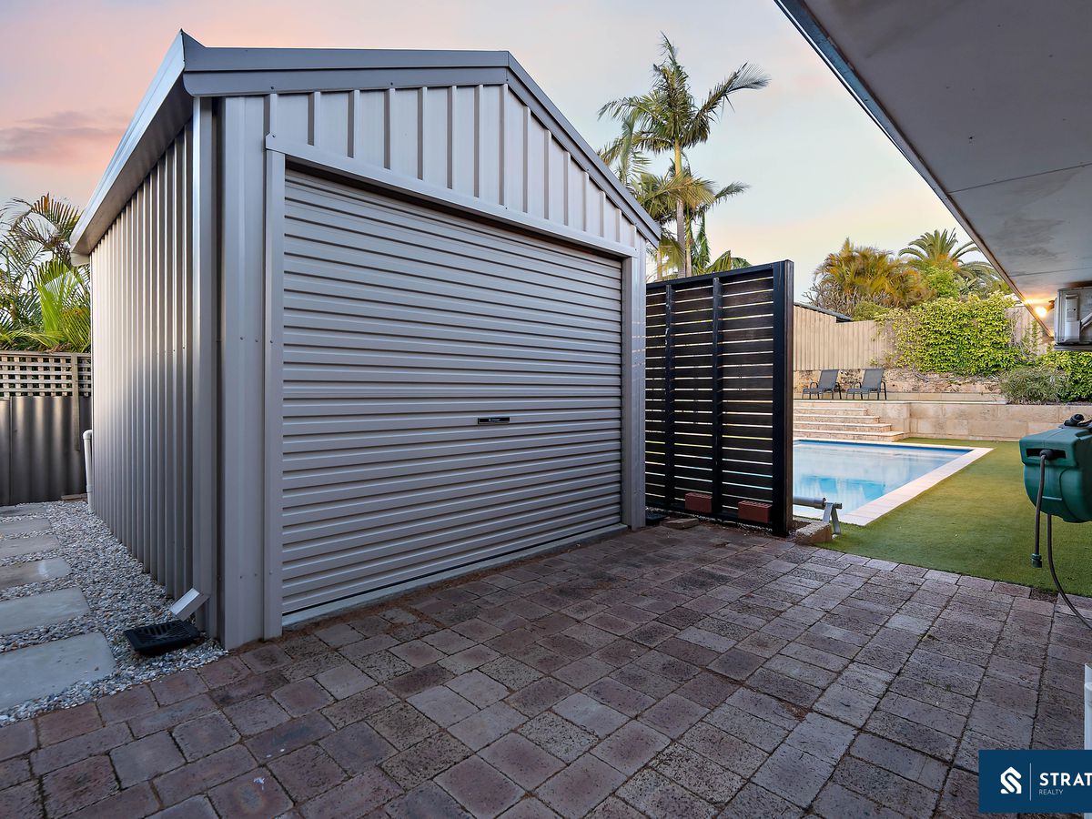 Outdoors, the family-friendly yard features low-maintenance surfaces, artificial lawn, garden beds, and a sparkling swimming pool-with plenty of space for kids and pets to play. A powered workshop is perfect for hobbies or extra storage, while a single carport and ample forecourt space provide room to park additional vehicles.