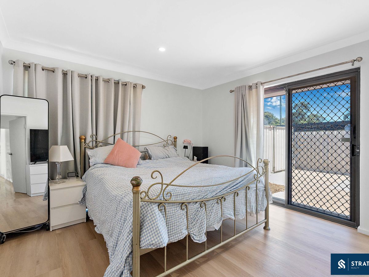 Accommodation is generous and practical. The master bedroom enjoys direct sliding-door access to the backyard, creating a calming connection to the outdoors. Four additional bedrooms are each a good size and ready to adapt as kids' rooms, guest rooms or a home office. The first bathroom features a heat light, vanity and shower-over-bath with floor-to-ceiling tiles, complemented by a separate toilet for everyday convenience. A second bathroom includes a shower, toilet and an integrated laundry for smart, space-saving functionality.