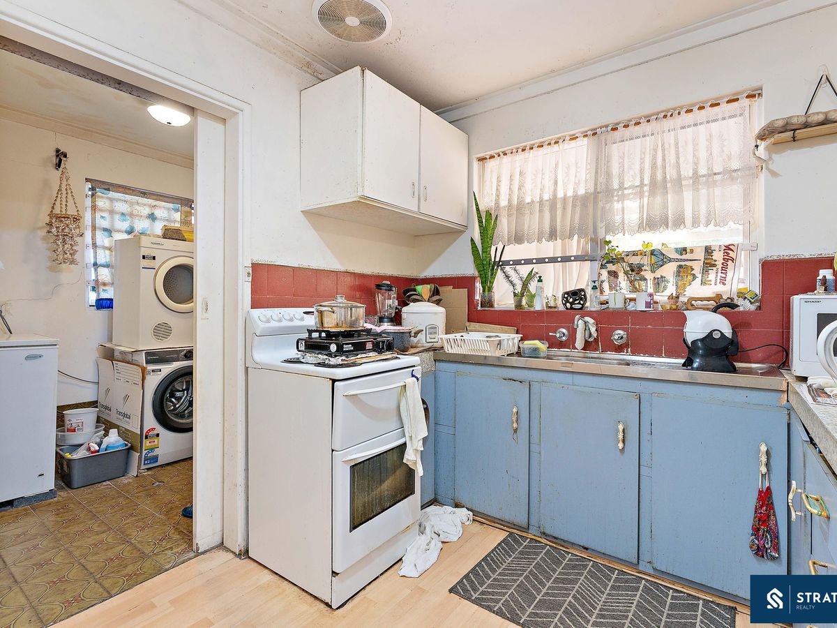 The living room is a cosy retreat with a ceiling fan and a wall-mounted air conditioner for year-round comfort. Flowing from here, the kitchen/meals area is practical and well laid out, featuring an electric cooktop, ample benchtop space, a built-in pantry and plentiful cupboard storage, with a glass sliding door that opens directly to the backyard for effortless entertaining.