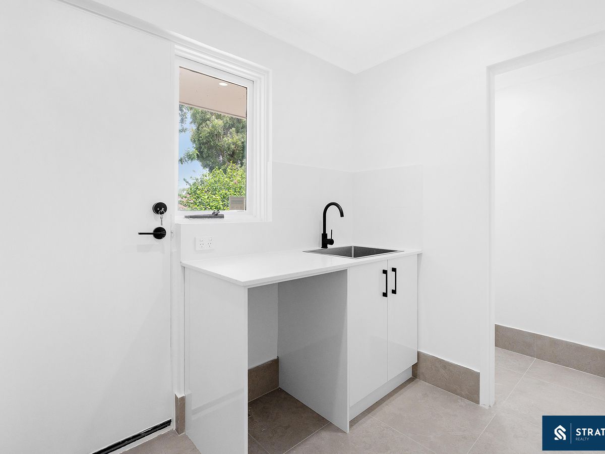 The renovations continue through to the laundry, finished with a stone bench and a separate toilet, adding another layer of convenience.