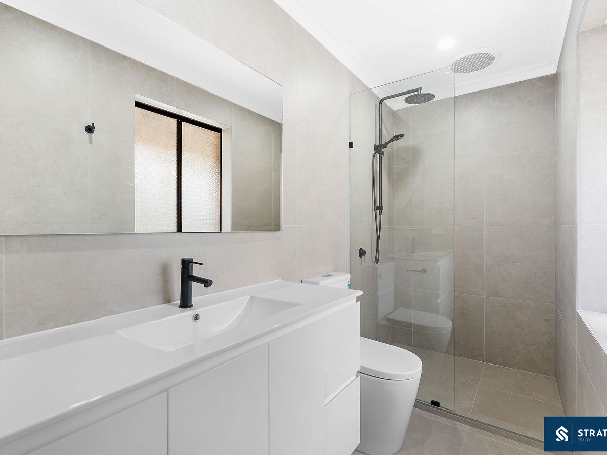 Accommodation includes four bedrooms, two with built-in robes, offering great storage for growing families. The master bedroom is a standout, featuring a make-up desk, generous robes, and a renovated en-suite with elegant floor-to-ceiling tiles and a sleek shower. The main bathroom mirrors this modern feel, complete with floor-to-ceiling tiling, a free-standing bathtub, and a separate shower - perfect for unwinding after a long day.