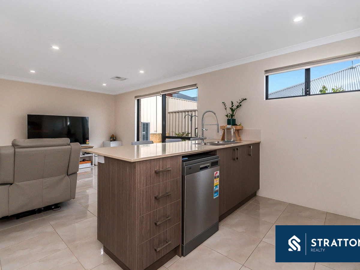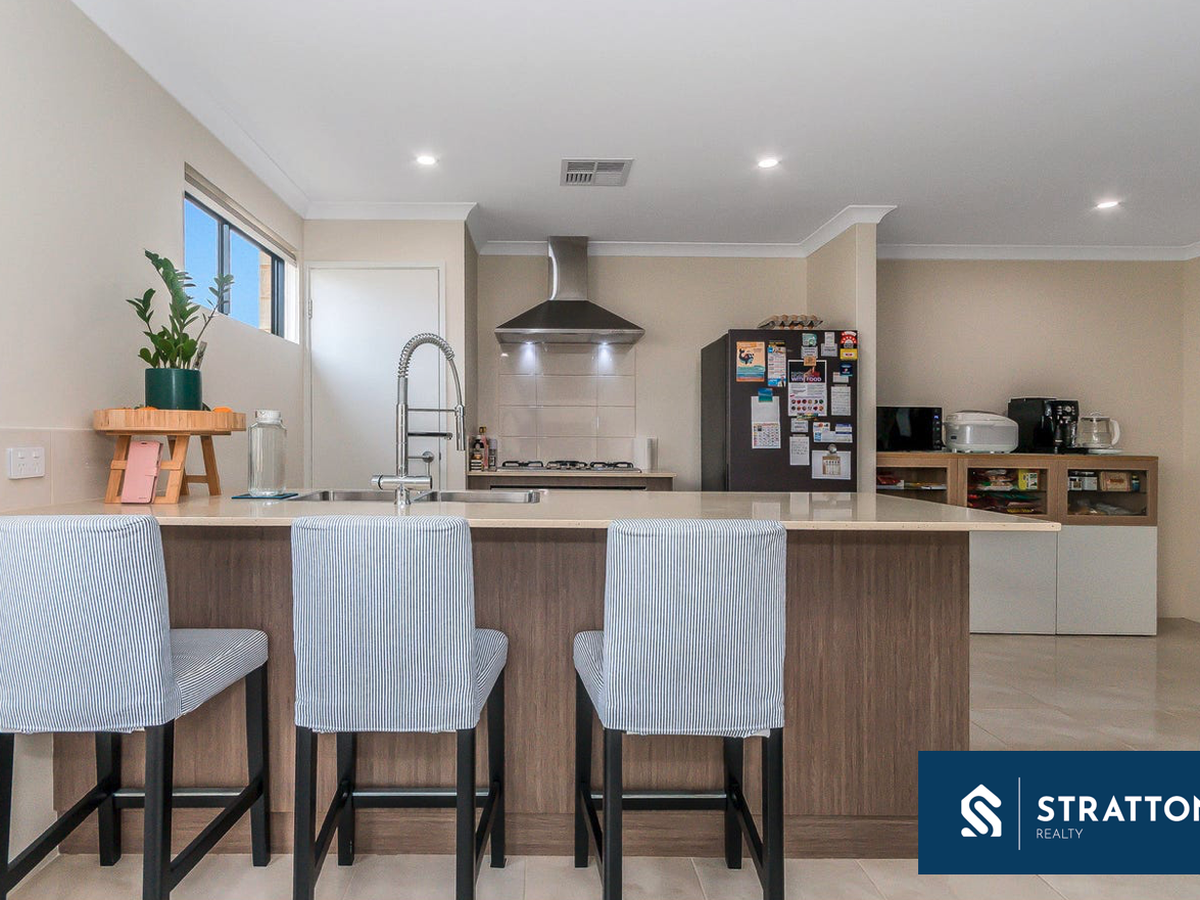 At the heart of the home is the expansive open-plan kitchen, meals, and living area, offering a bright and inviting space to relax or entertain. The modern kitchen comes equipped with a gas cooktop, dishwasher, built-in pantry, and plenty of cupboard space-ideal for everyday cooking and hosting friends and family.