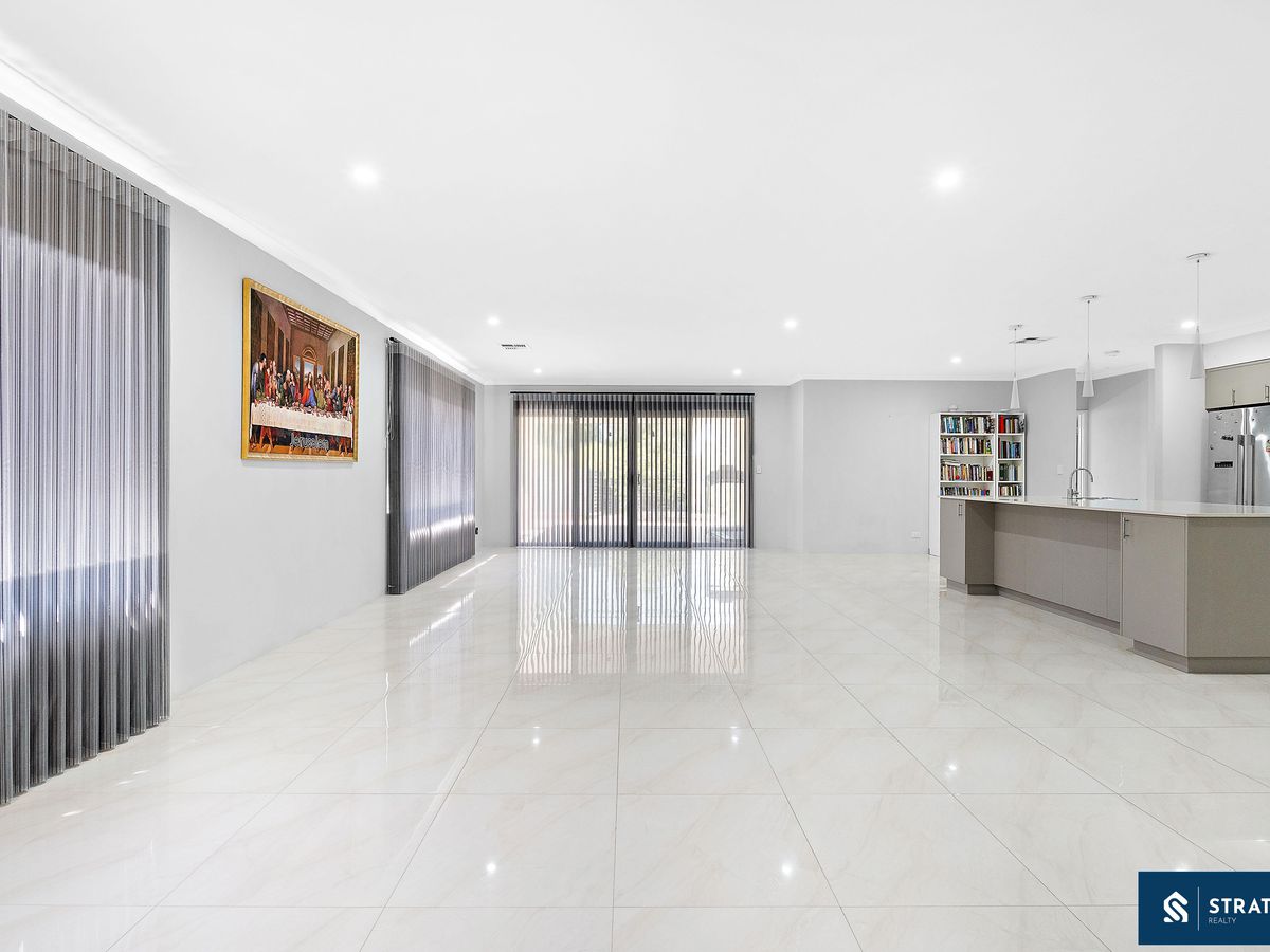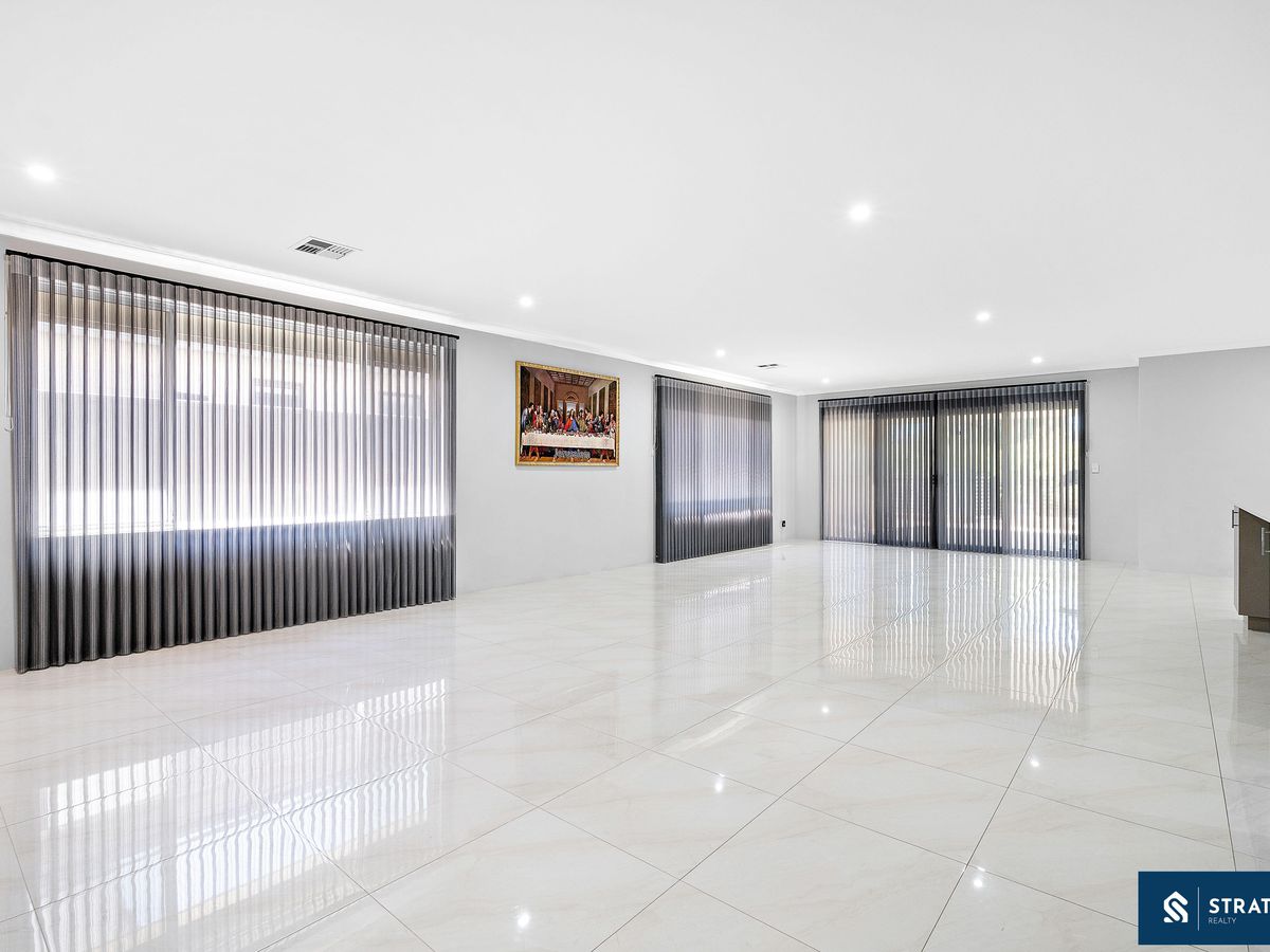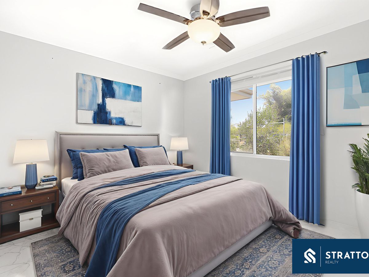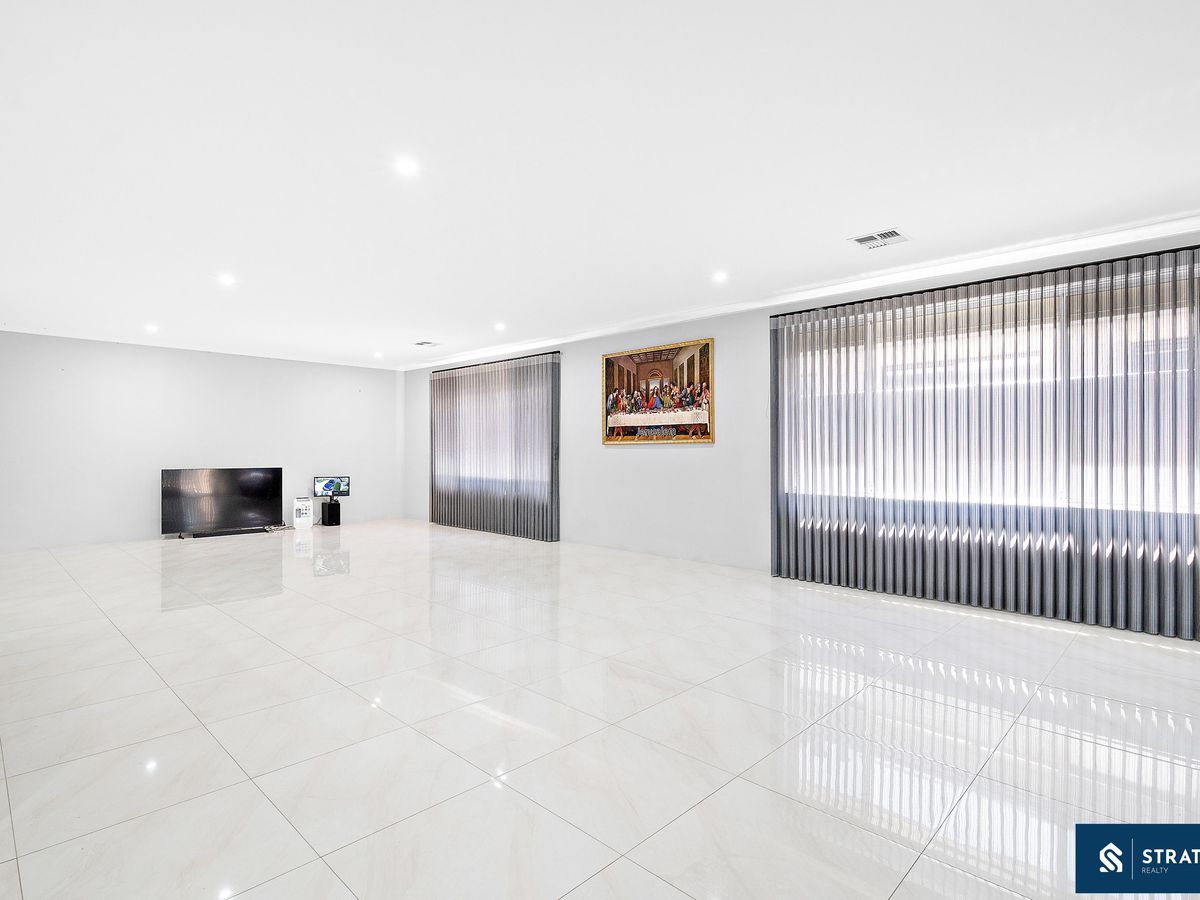 Inside, the home is enhanced by high ceilings, tiled flooring throughout, and LED downlights, creating a bright and welcoming atmosphere. The generous master suite is thoughtfully positioned and features his and hers walk-in robes along with a stylish en-suite complete with double vanity, shower, toilet, and LED lighting. Multiple living zones include a large lounge that can easily be converted into a dedicated theatre room, with roller shutters adding both privacy and comfort.