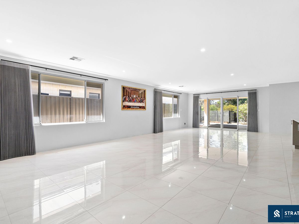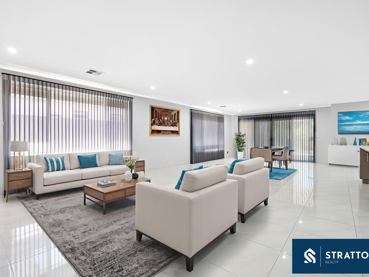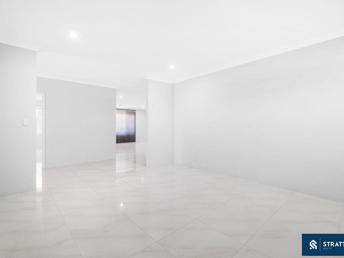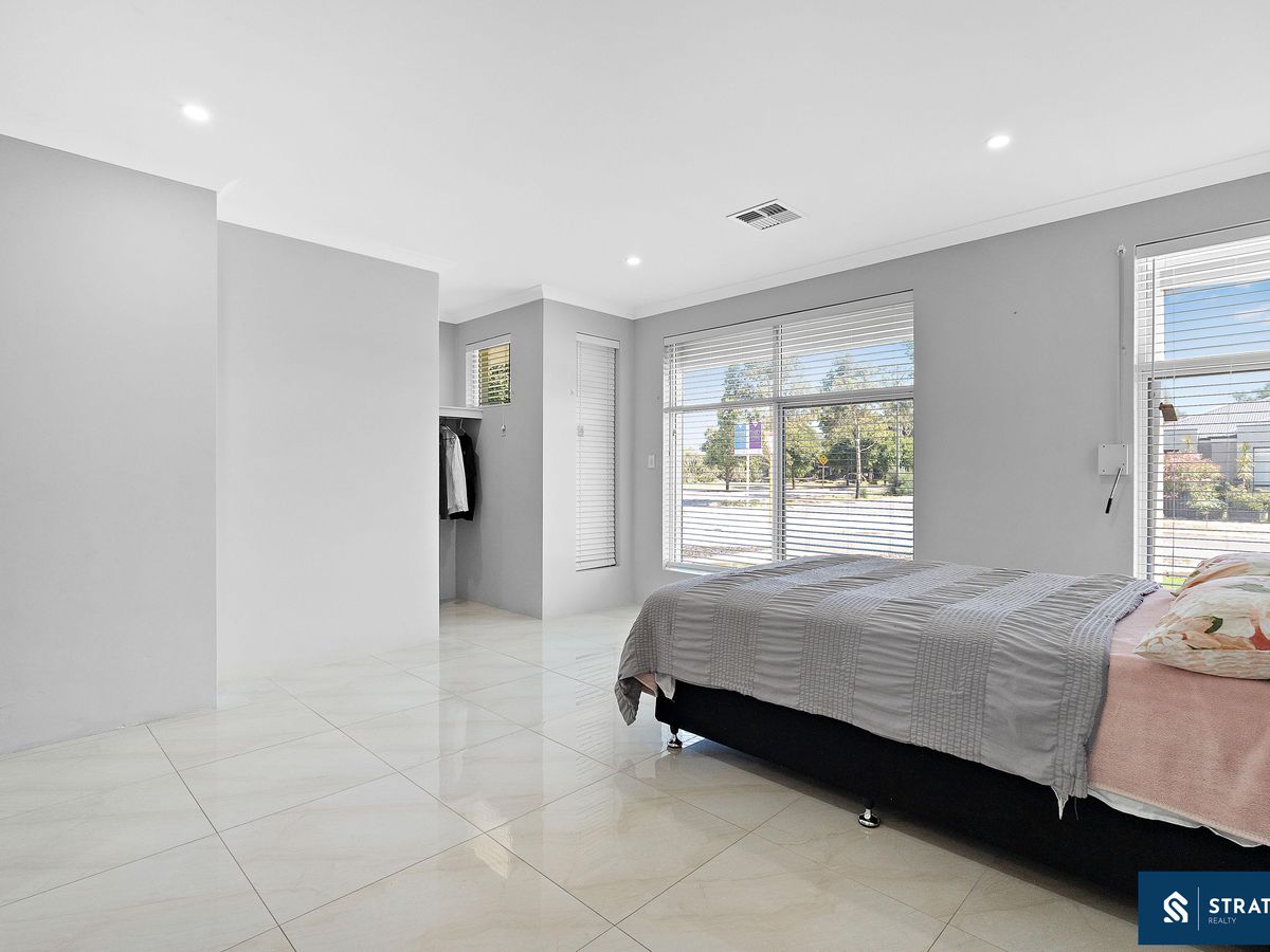 Inside, the home is enhanced by high ceilings, tiled flooring throughout, and LED downlights, creating a bright and welcoming atmosphere. The generous master suite is thoughtfully positioned and features his and hers walk-in robes along with a stylish en-suite complete with double vanity, shower, toilet, and LED lighting. Multiple living zones include a large lounge that can easily be converted into a dedicated theatre room, with roller shutters adding both privacy and comfort.