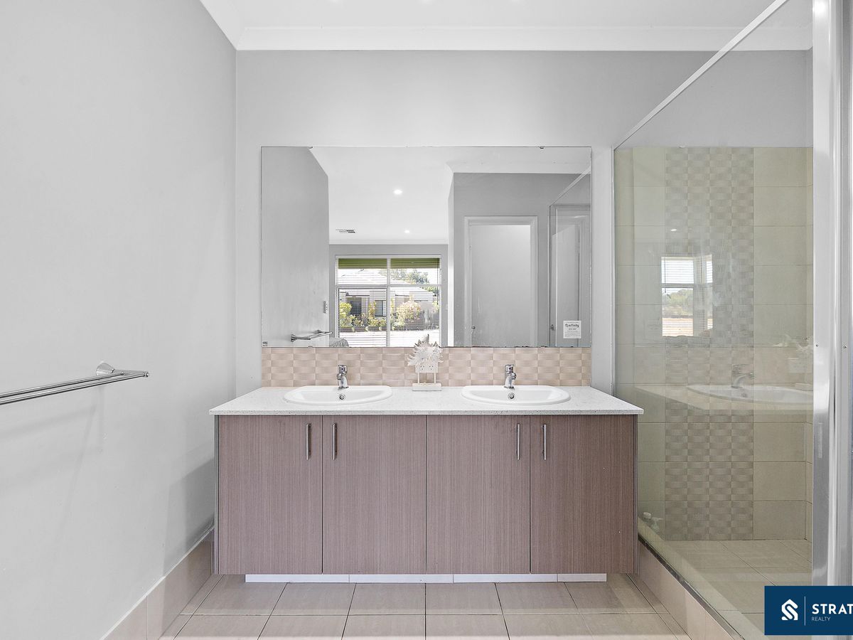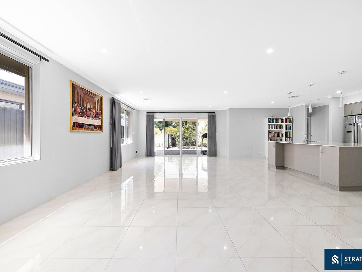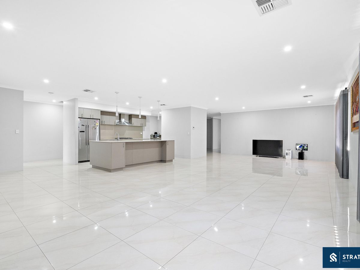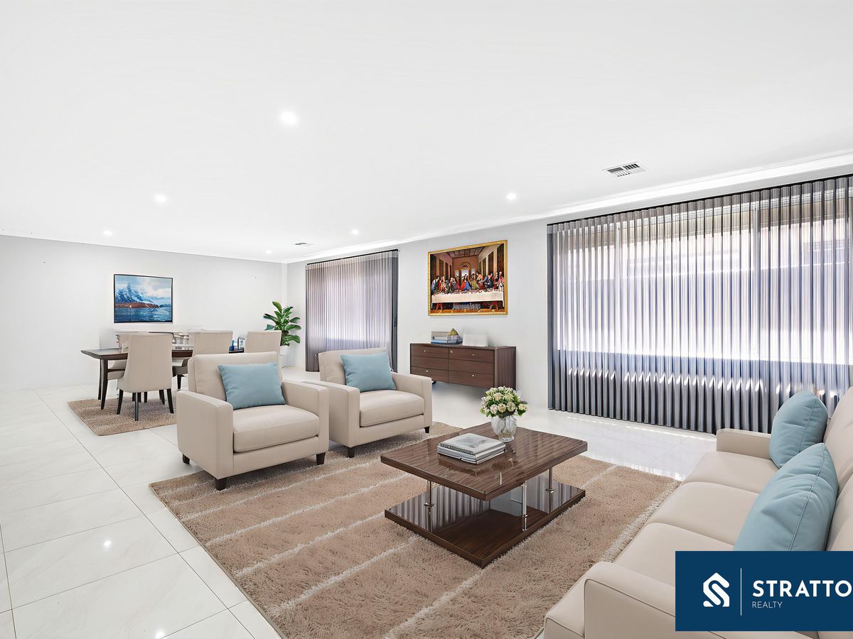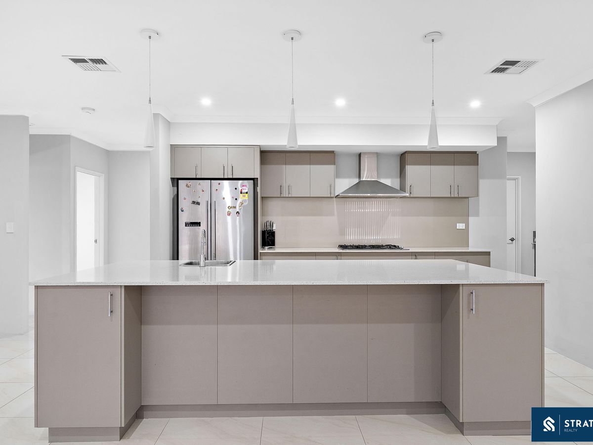 At the heart of the home, the open-plan living, meals, and kitchen area is designed for everyday living and entertaining. The kitchen is well equipped with stone benchtops, 900mm gas cooktop, 900mm oven, ample cabinetry, and a scullery with double sink and walk-in pantry, making it both practical and impressive. The remaining bedrooms are all generously proportioned, each with mirrored built-in robes and roller shutters, while the main bathroom offers a separate shower, bathtub, and toilet for family convenience.