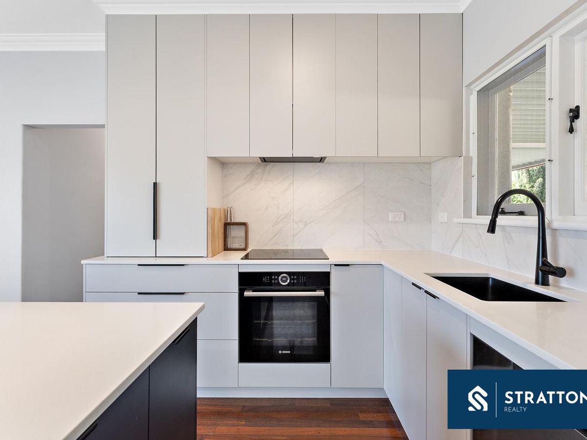At the heart of the home is a renovated, oversized kitchen complete with an island bench, electric cooktop, and ample cupboard space. Flowing seamlessly into the open-plan living and meals area, this space is ideal for everyday living and entertaining alike. Jarrah timber flooring throughout the living areas and bedrooms adds warmth and a cohesive finish.