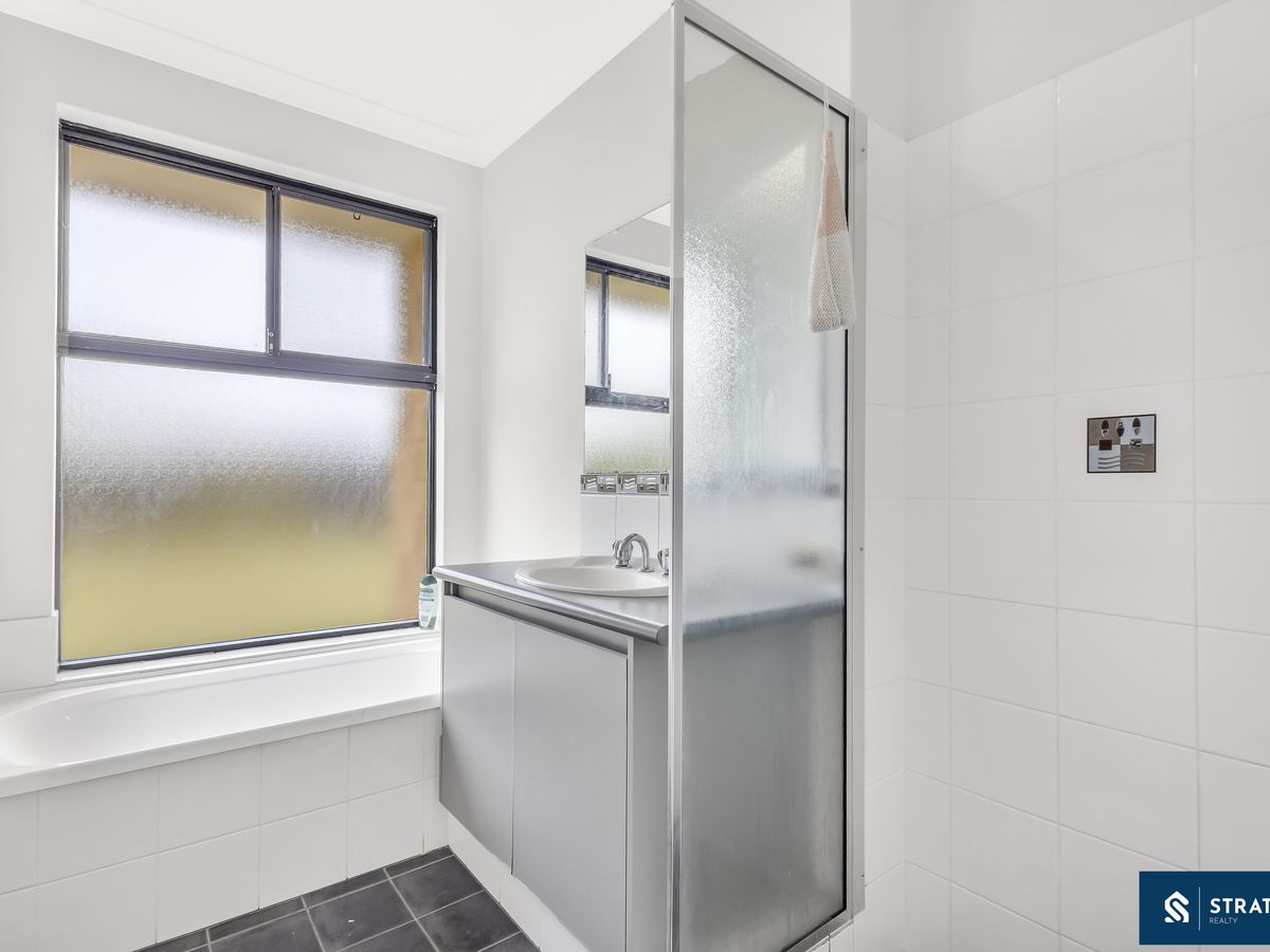 The home features four bedrooms and two bathrooms, with all bedrooms finished in carpet flooring. The master bedroom includes a large walk-in wardrobe and private ensuite with shower and toilet, while the main bathroom is equipped with both a shower and bathtub.