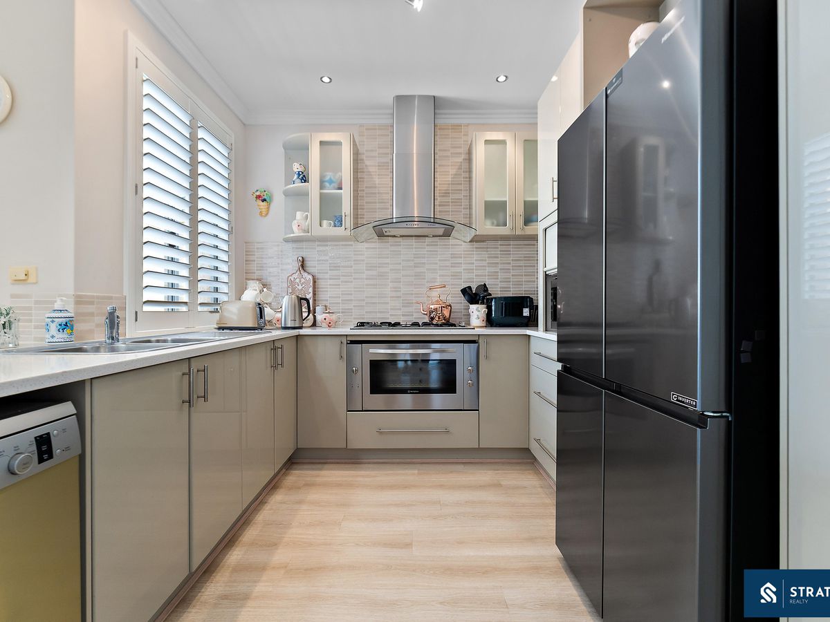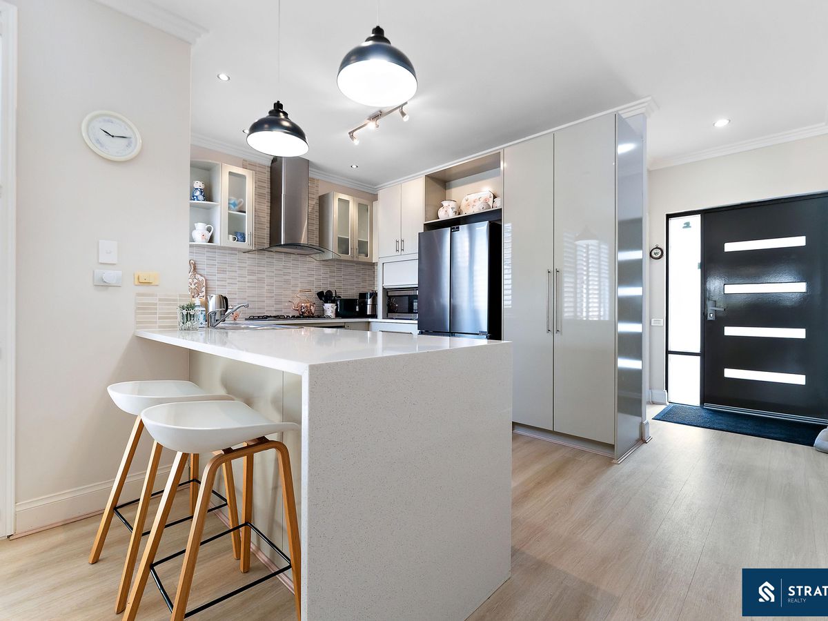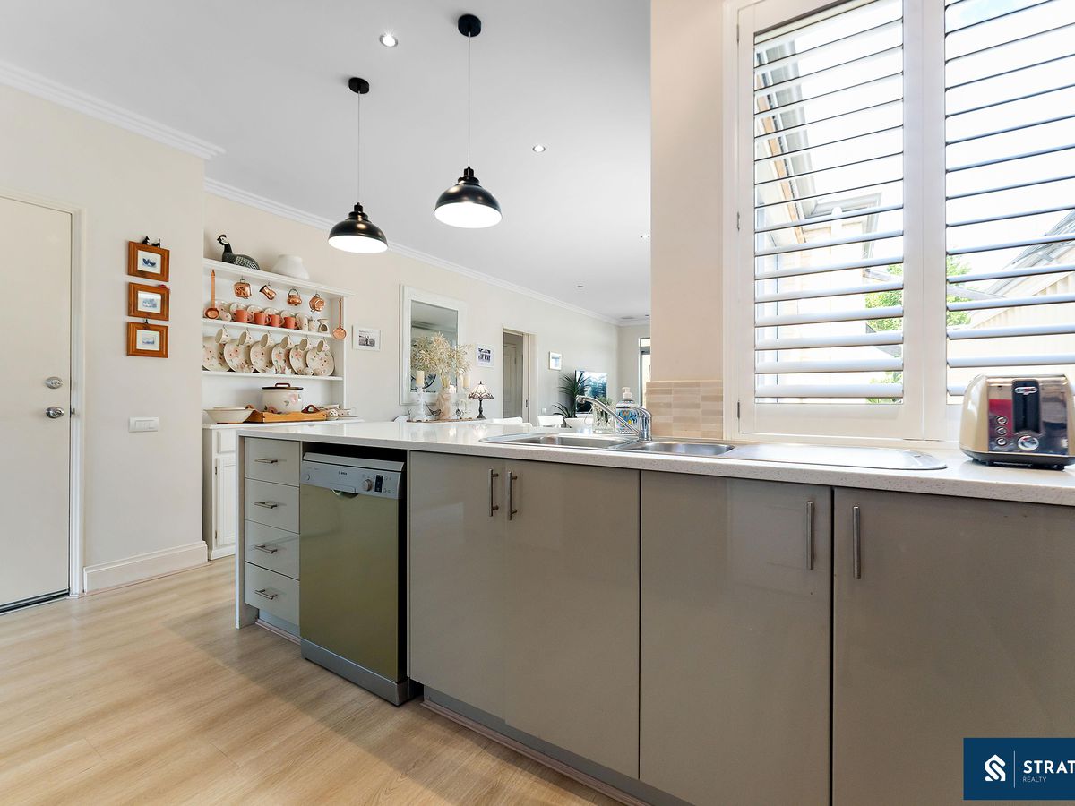 The well-appointed kitchen forms the heart of the home and is equipped with a 900mm gas cooktop, dishwasher, generous cabinetry, a built-in pantry, and a stone island benchtop with waterfall edges and a double sink-perfect for both daily living and entertaining. The open-plan meals and living area connects seamlessly to the kitchen and includes split-system air conditioning for year-round comfort.