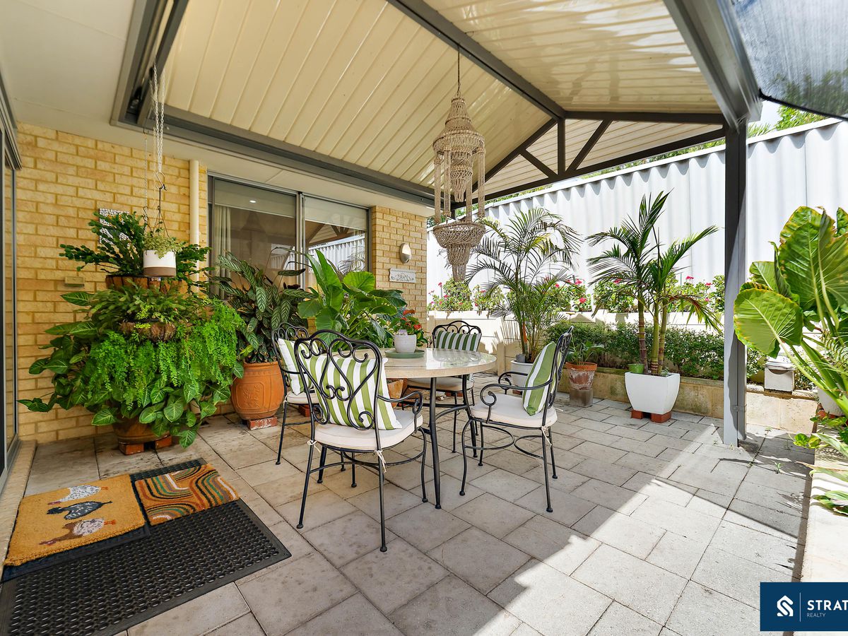 A single car garage provides secure parking, while the rear of the home opens through a security screen door to a shaded patio and low-maintenance garden-an ideal outdoor space to relax and enjoy without the upkeep.