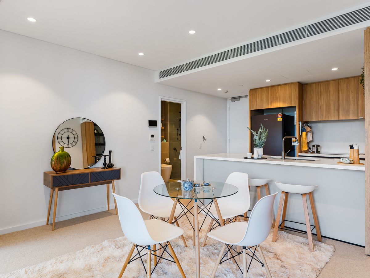 Set on the first floor within the well-regarded Parallel Apartments, the residence showcases a refined modern aesthetic paired with thoughtful design. The open-plan kitchen, dining, and living area is filled with natural light and carefully oriented to capture expansive views across the Swan River, surrounding parklands, and city skyline. Sliding doors open onto a private balcony, extending the living space outdoors - the perfect place to unwind by day or enjoy the city lights after dark.