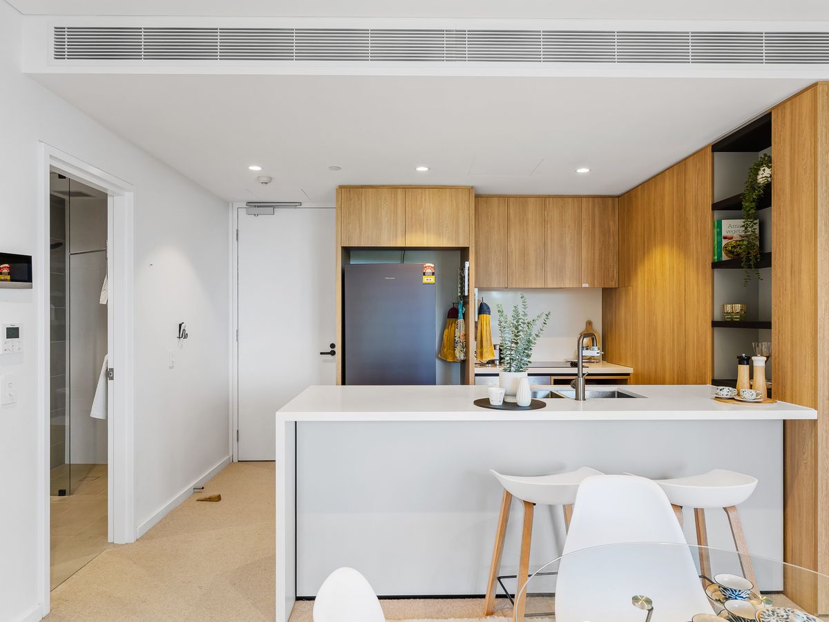Residents benefit from an impressive range of resort-style facilities, including an infinity-edge swimming pool overlooking the river and CBD, outdoor spa, BBQ and alfresco entertaining areas, gymnasium, yoga deck, and shared air-conditioned dining and lounge spaces. With ducted air conditioning, quality finishes, and low-maintenance appeal, this apartment suits professionals, owner-occupiers, and investors alike.
