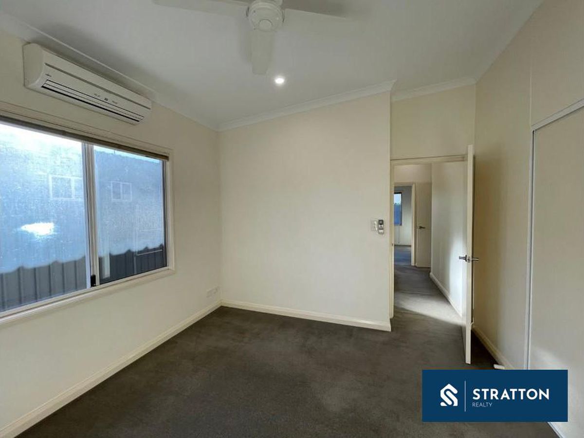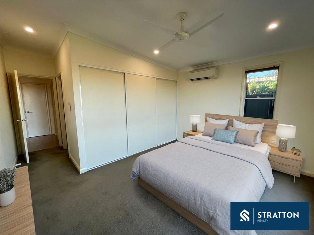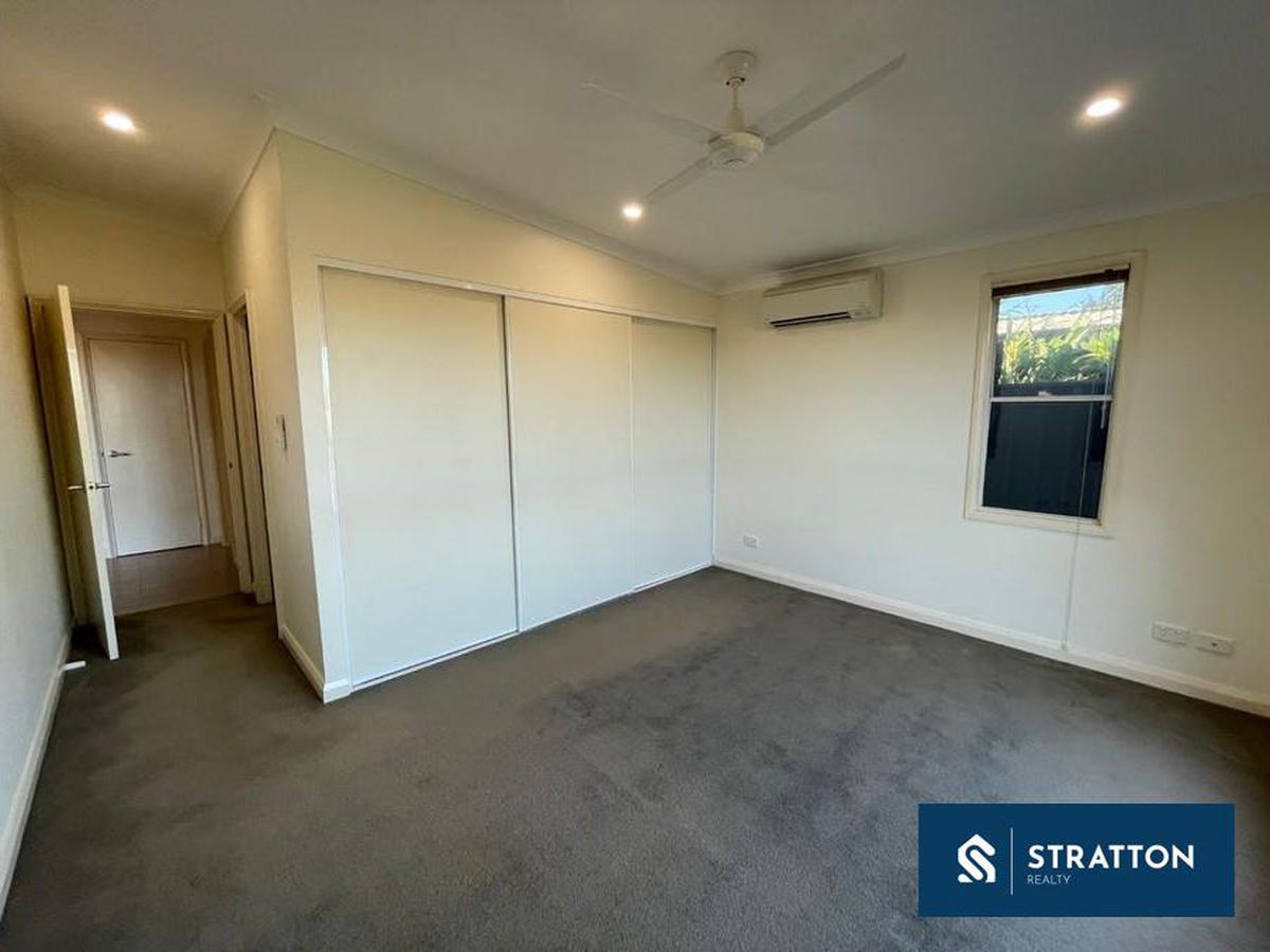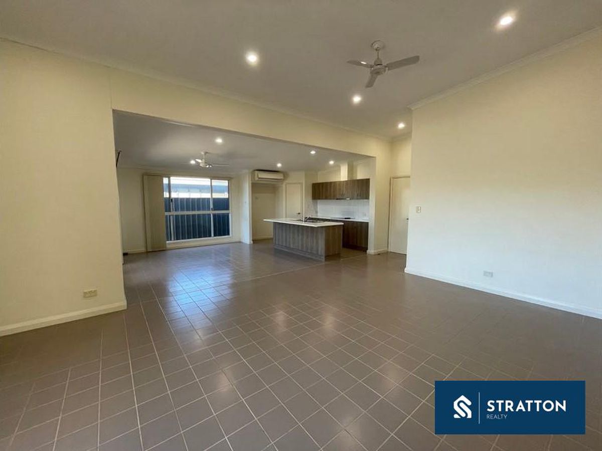 At the front of the home sits a separate theatre or formal lounge, while the open plan kitchen, meals and family area forms the central hub of the property. Tiled flooring through the main living areas provides durability ideal for leasing, supported by split system air conditioning, ceiling fans and downlights throughout.