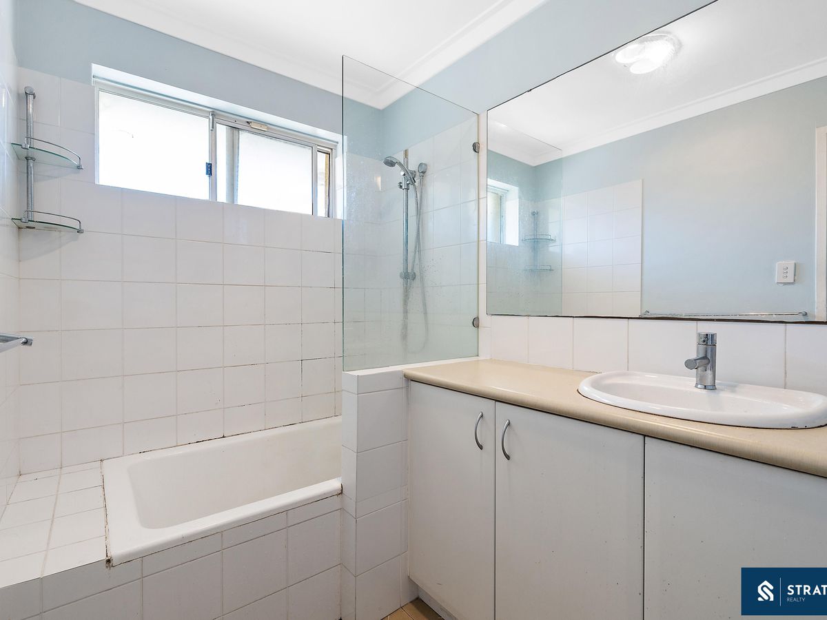 The master suite is designed as a true retreat, complete with split system air conditioning, a ceiling fan and separate his and hers walk-in wardrobes. The ensuite is generous in size and includes a large shower and toilet, with dual access allowing convenient entry from the hallway as well. The main bathroom is well sized and features a combined bathtub and shower, with a separate toilet located adjacent for added functionality.