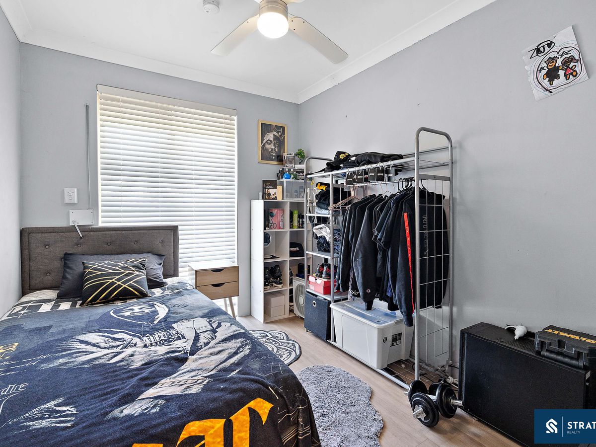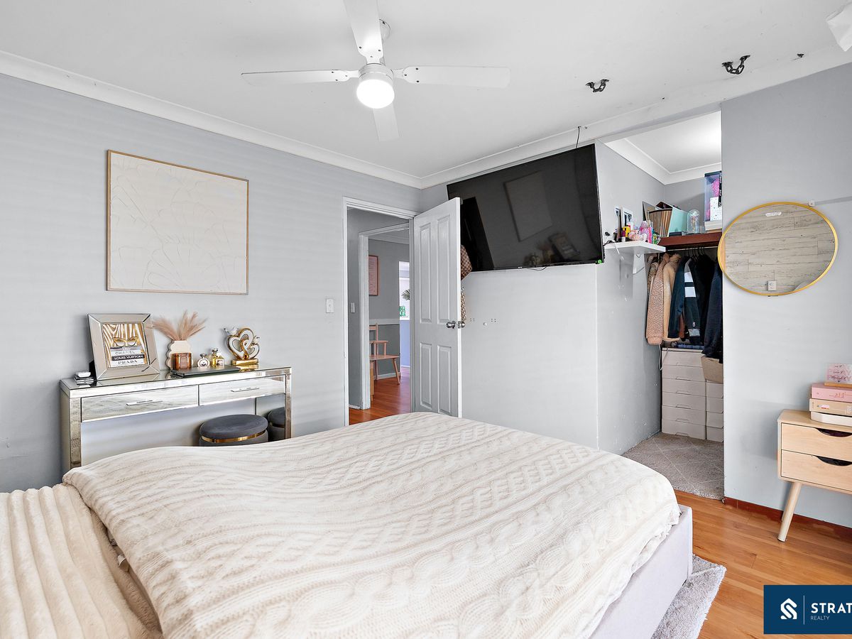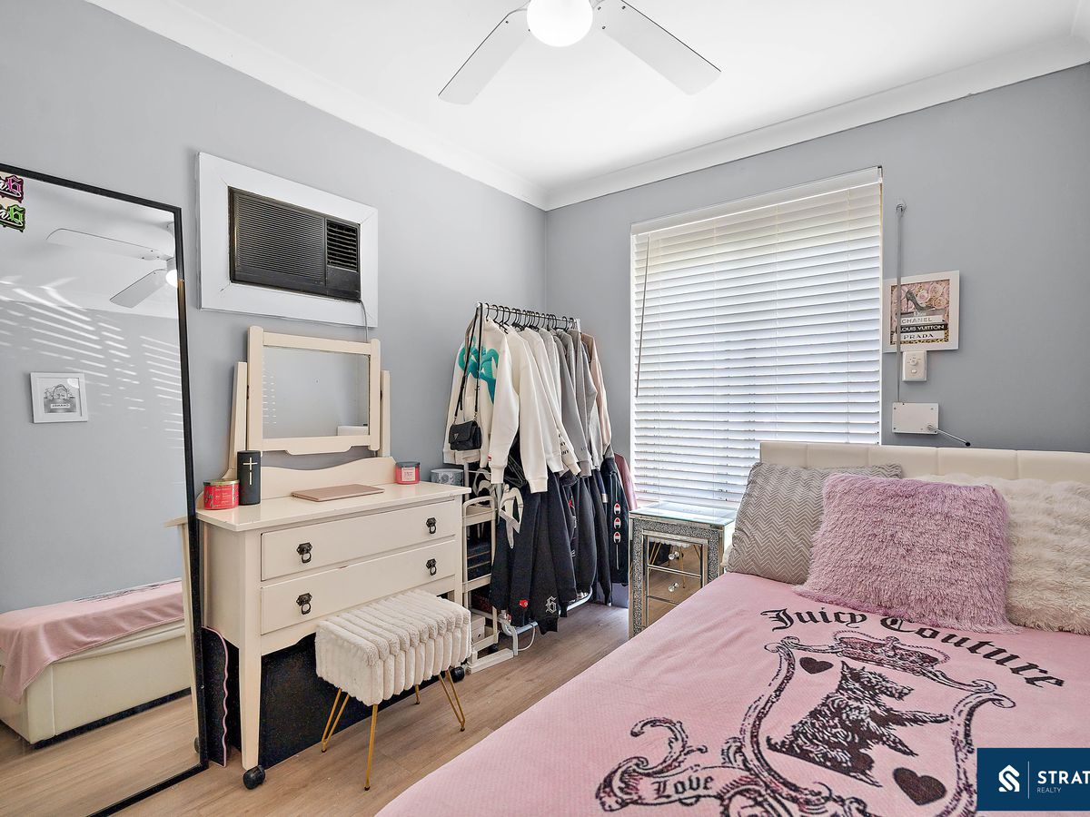 The master bedroom is generously sized and offers a walk-in closet, roller shutters, split system air conditioning and a ceiling fan, creating a private and comfortable retreat. Bedrooms two and three are both well sized, finished with hybrid flooring and ceiling fans, while bedroom two also includes its own split system air conditioner.