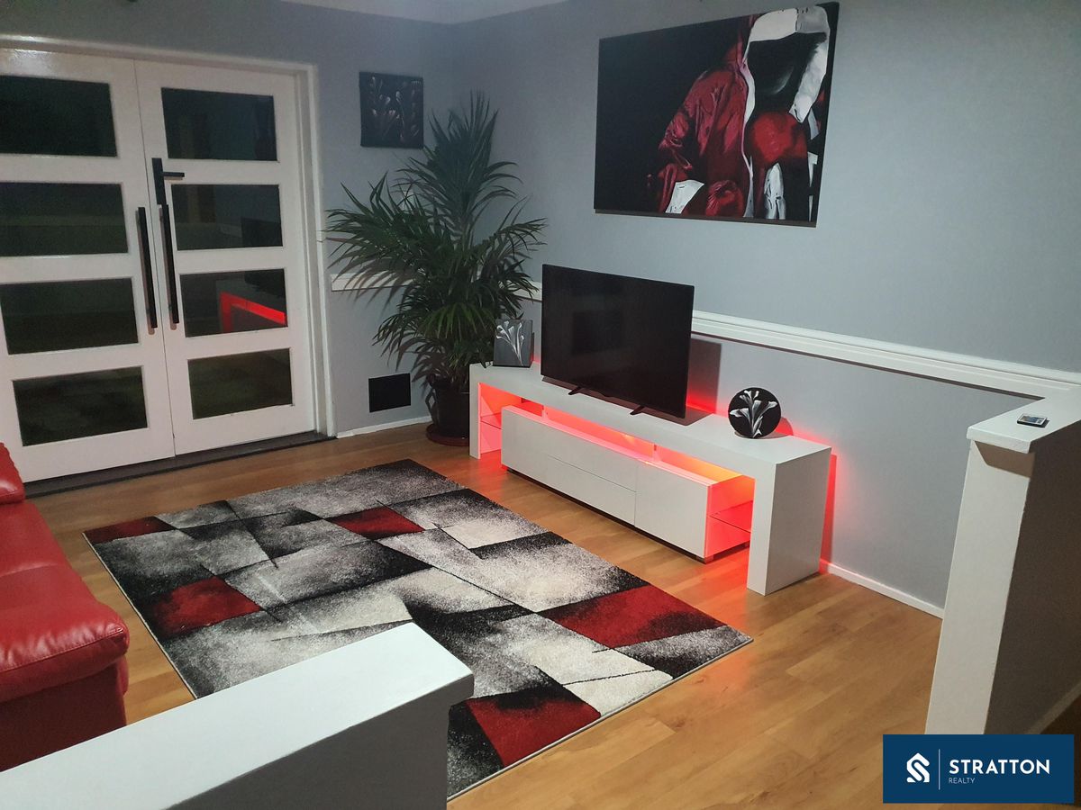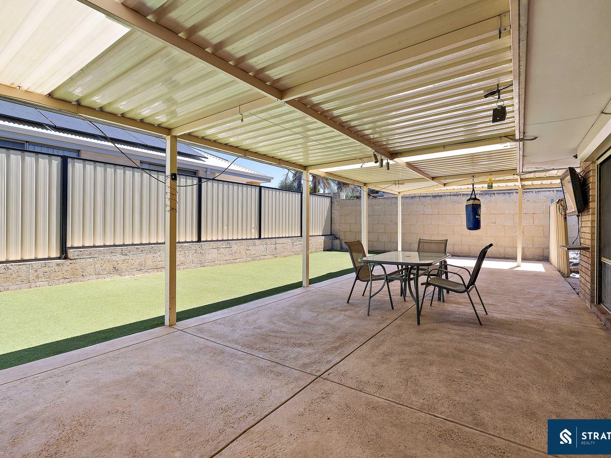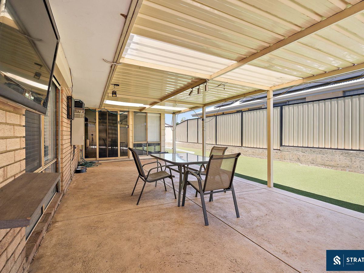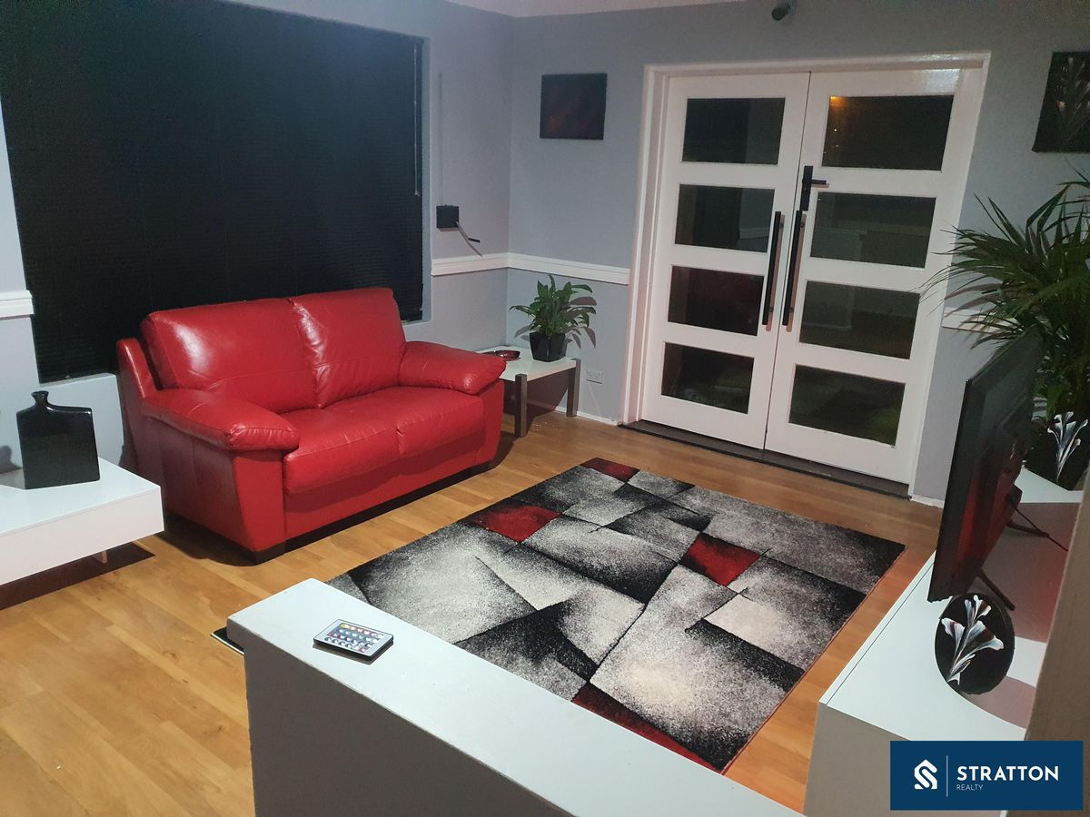 The adjoining meals area is well sized and complete with a ceiling fan, making it a comfortable spot for family dinners. A separate living room provides additional space for relaxation and features LED downlights and a split system air conditioner for year-round comfort.