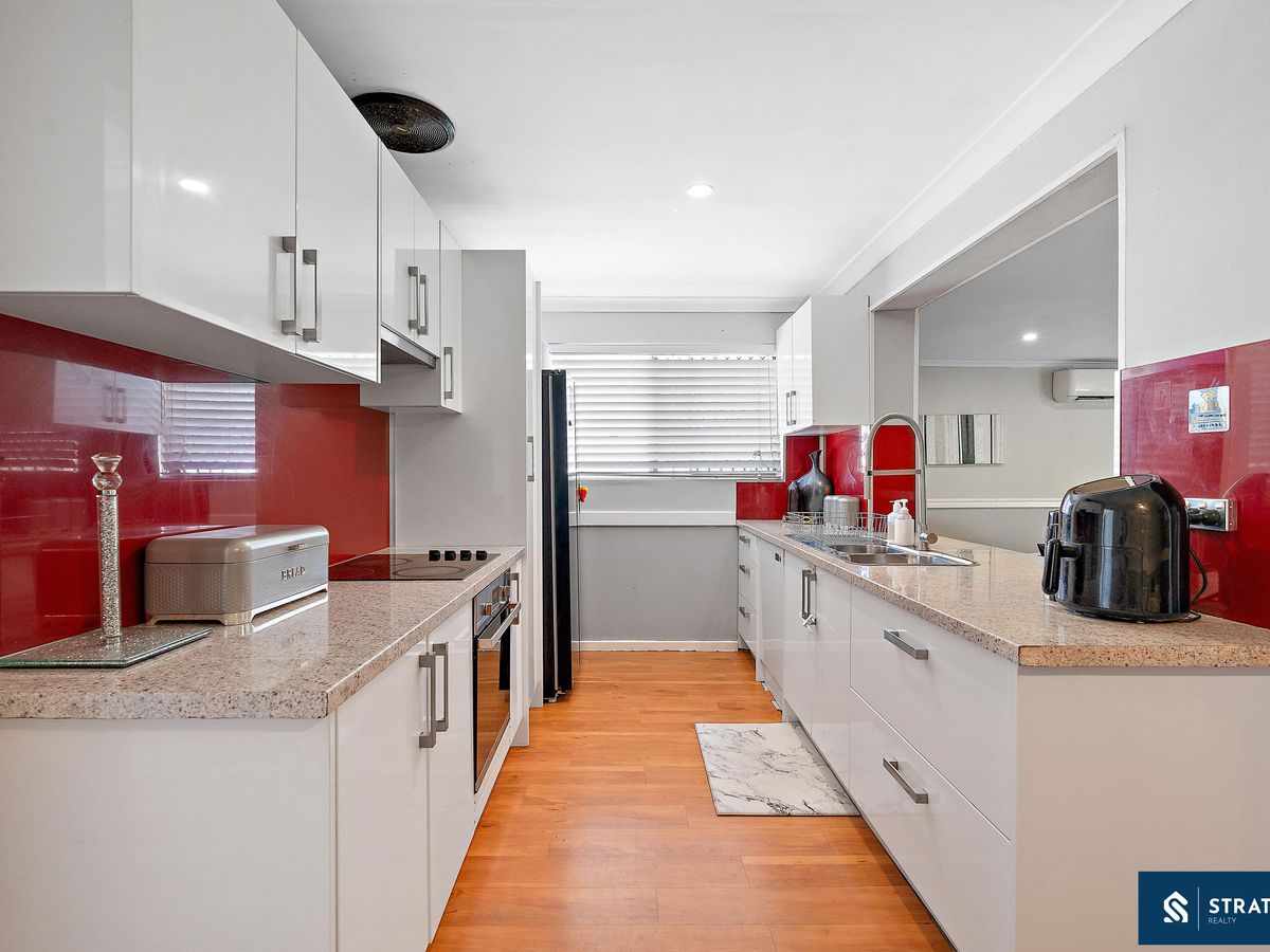 As you enter, you're greeted by a cosy lounge area, creating a warm first impression. This space also features double door access to the side of the home, allowing for added convenience and flexibility. Moving through, the kitchen is well proportioned and thoughtfully designed with a stone benchtop, double sink, electric cooktop, built-in pantry, dishwasher and plenty of cabinet space - ideal for everyday cooking and entertaining.