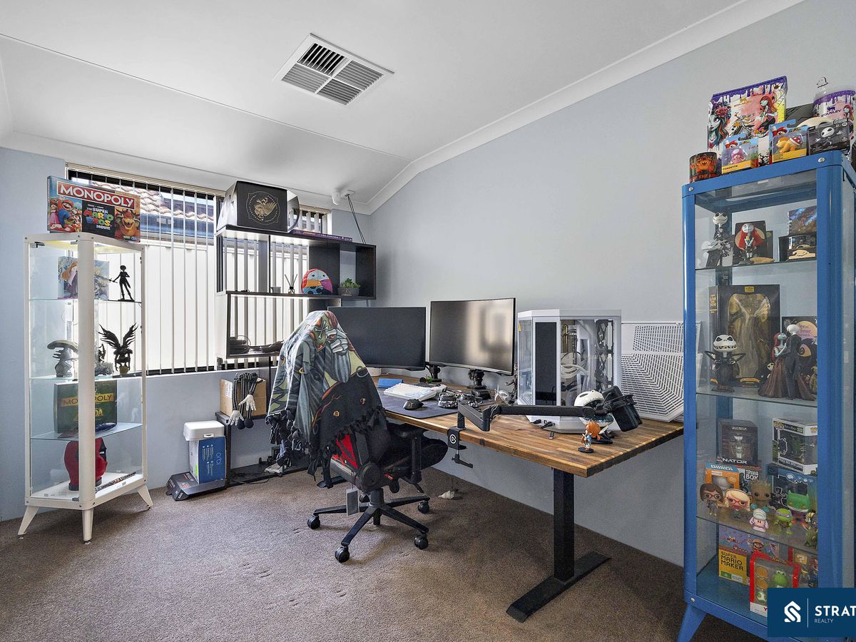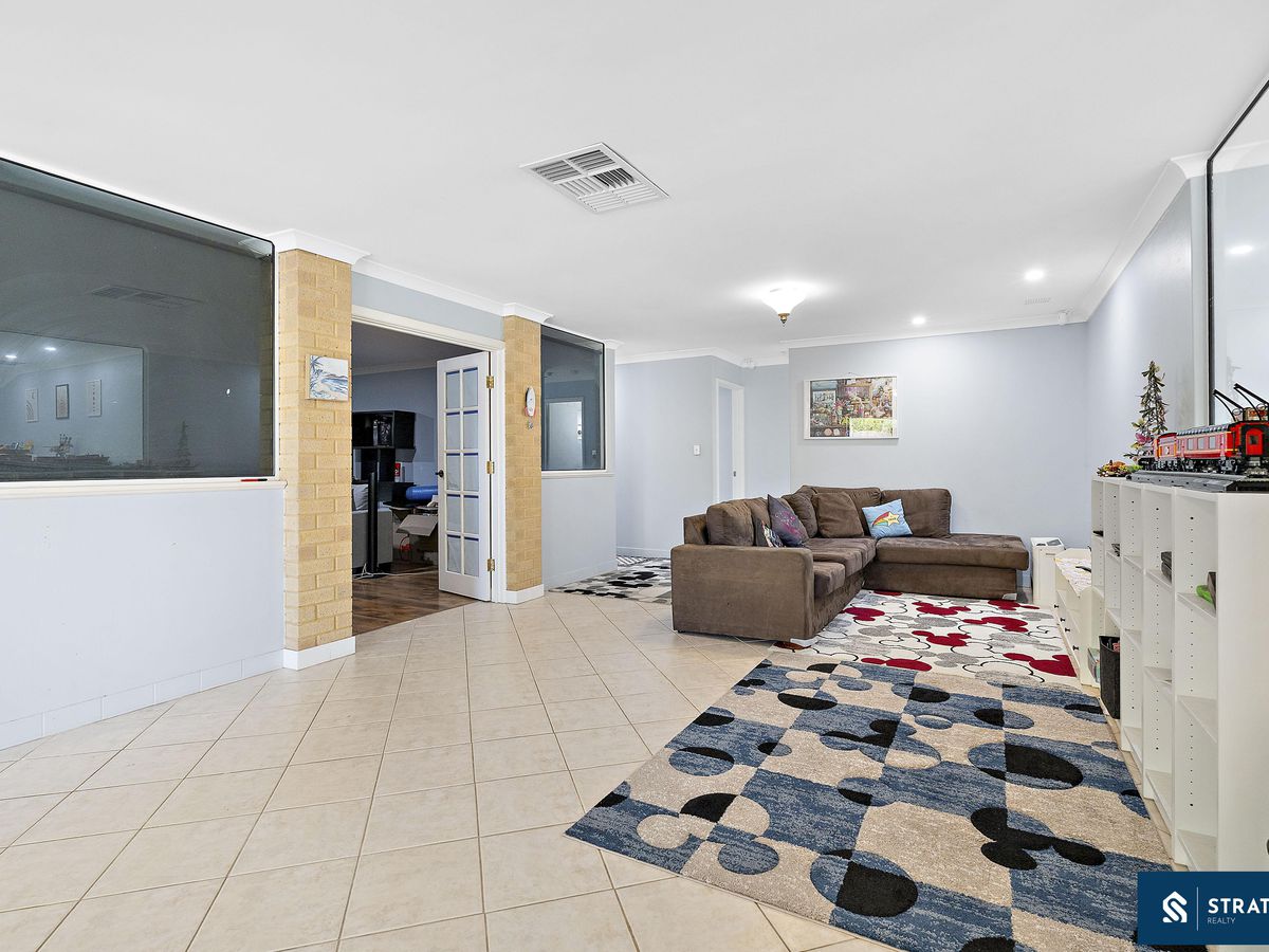 A separate study provides the perfect space for working from home or creating a quiet reading area. The layout offers multiple living zones to suit growing families, including a spacious meals area with double door access to the backyard and security screen, a well sized second living area, and a dedicated theatre room with double door entry and stylish floorboard flooring, ideal for movie nights or entertaining.