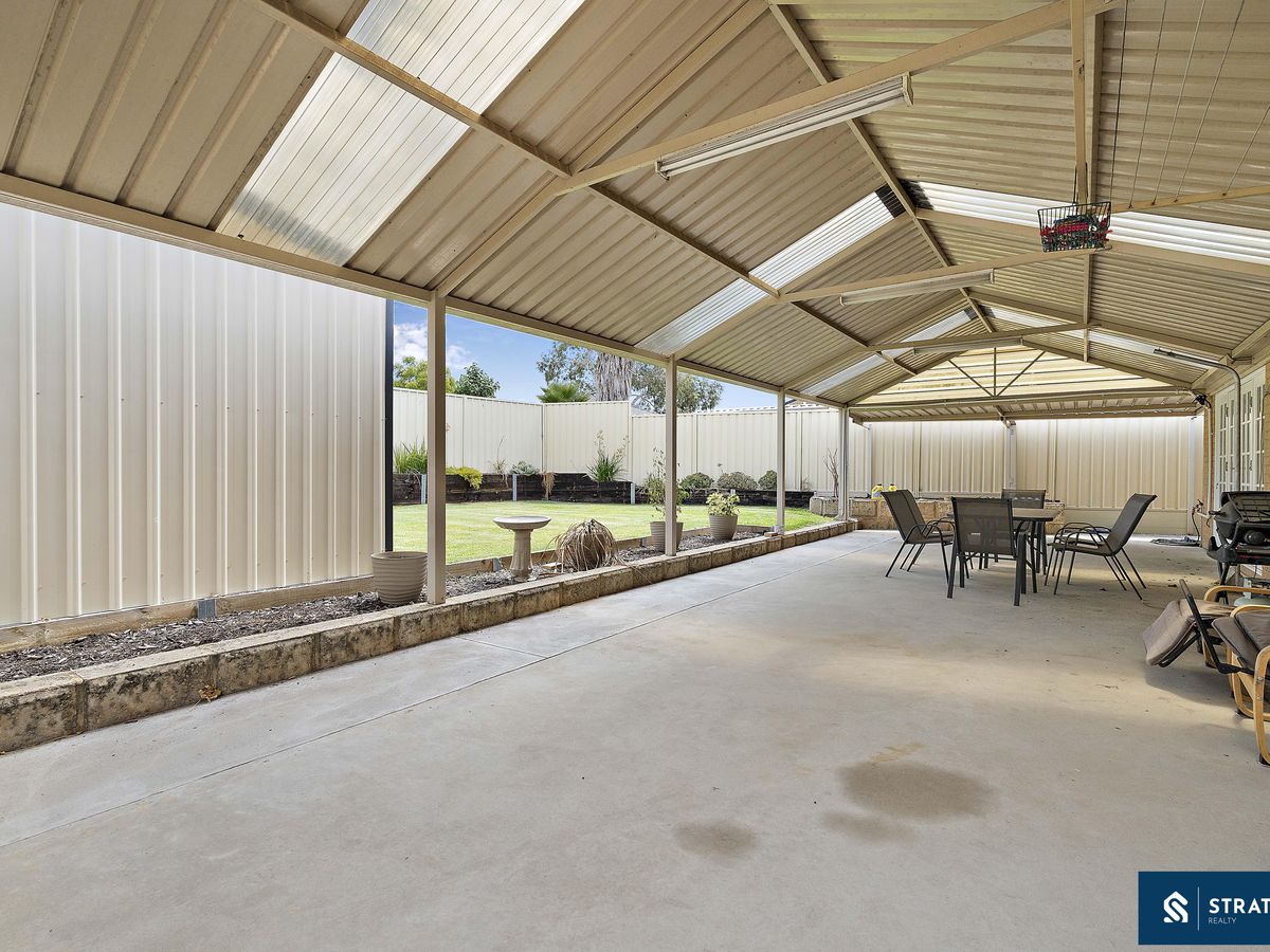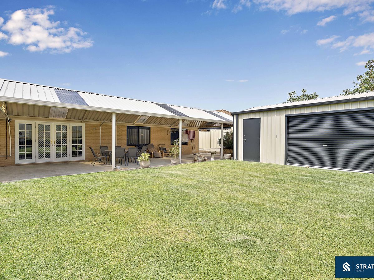 Comfort is assured year-round with ducted reverse cycle air conditioning throughout the home, while security screens are fitted to the front, side and rear doors. Outside, the patio wraps around from the side of the home to the rear, creating an excellent outdoor entertaining space. The backyard offers a generous grassed area along with a well sized shed featuring both roller door and separate door access.