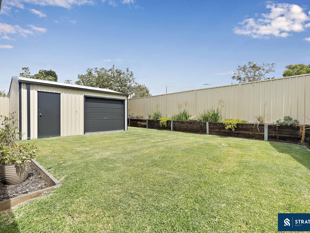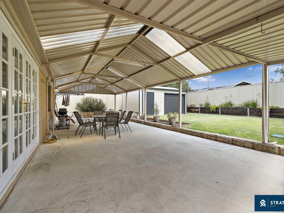 Comfort is assured year-round with ducted reverse cycle air conditioning throughout the home, while security screens are fitted to the front, side and rear doors. Outside, the patio wraps around from the side of the home to the rear, creating an excellent outdoor entertaining space. The backyard offers a generous grassed area along with a well sized shed featuring both roller door and separate door access.