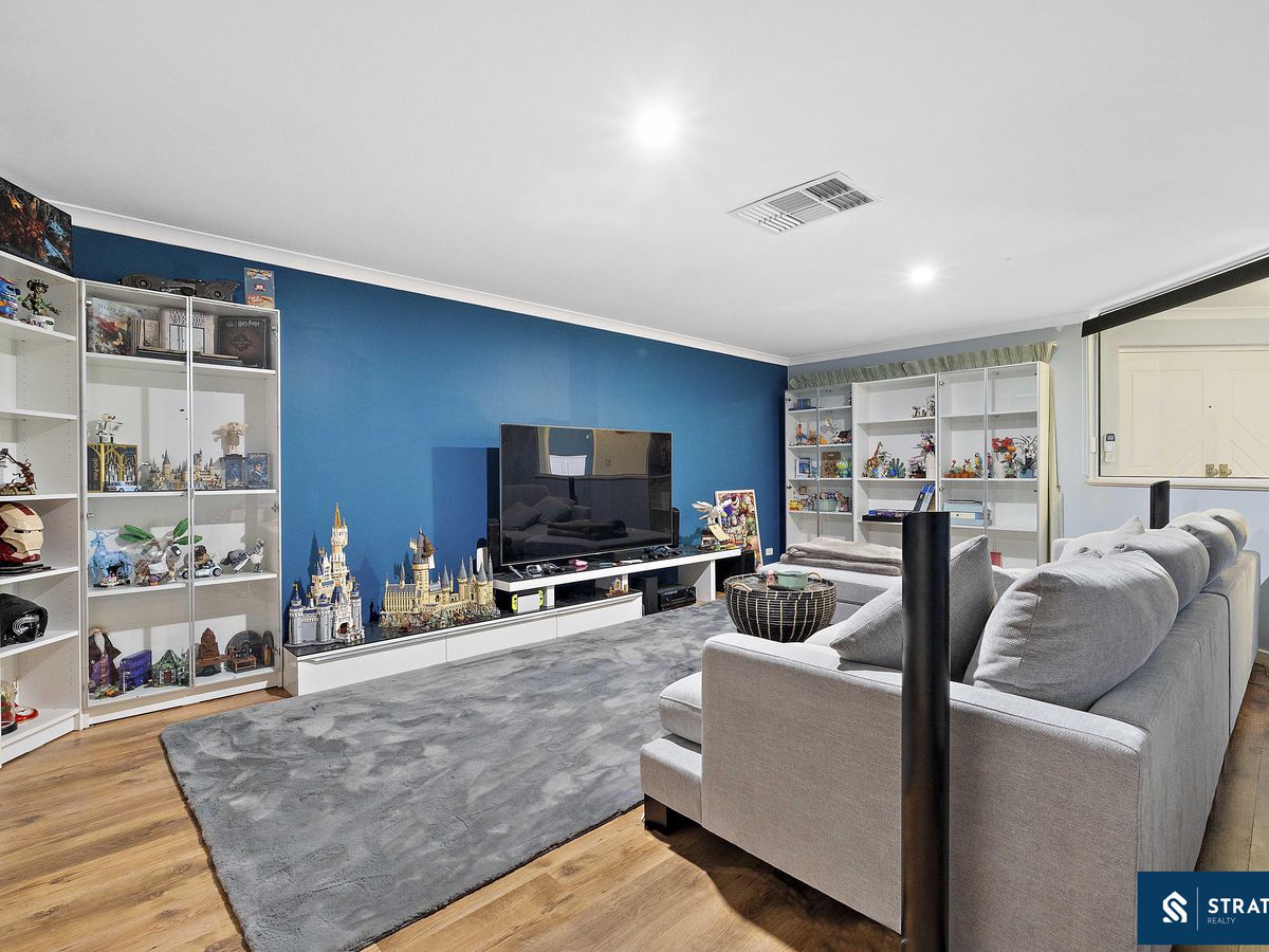 A separate study provides the perfect space for working from home or creating a quiet reading area. The layout offers multiple living zones to suit growing families, including a spacious meals area with double door access to the backyard and security screen, a well sized second living area, and a dedicated theatre room with double door entry and stylish floorboard flooring, ideal for movie nights or entertaining.