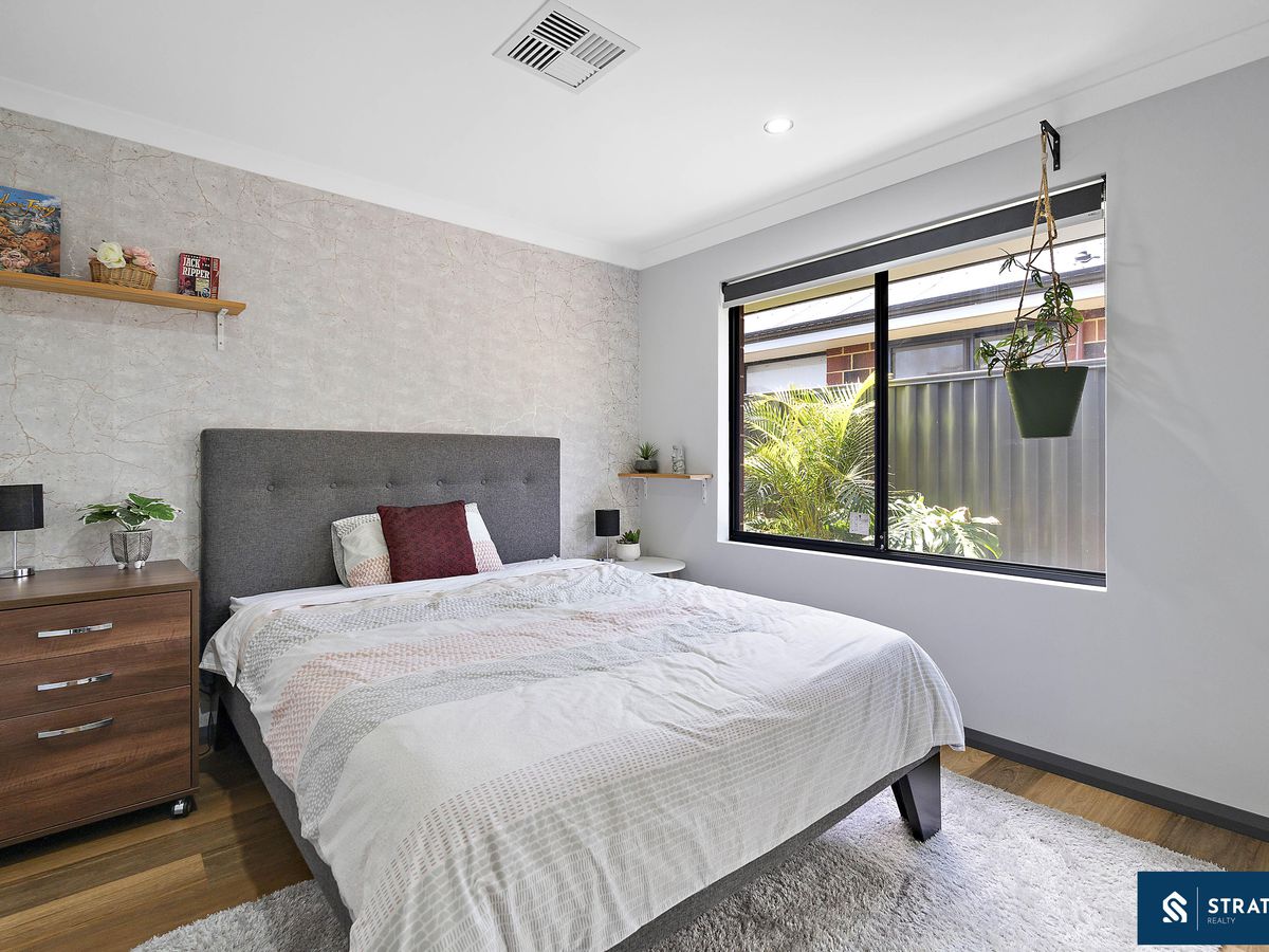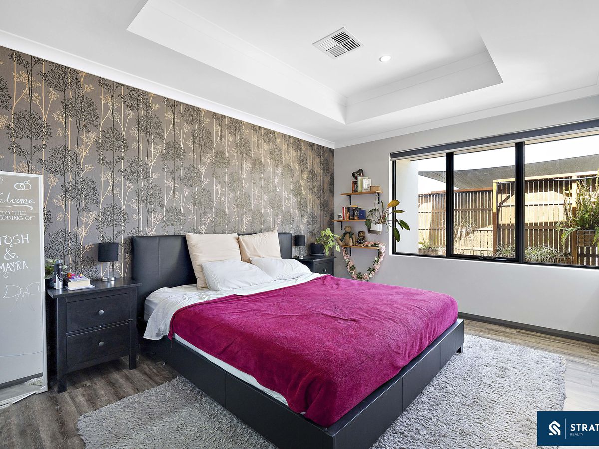 The well-sized master bedroom is privately positioned and features stylish recessed ceilings, quality hybrid flooring, and a generous walk-in closet. The ensuite is finished with floor-to-ceiling tiles and includes a shower and toilet, creating a clean and contemporary space. The additional bedrooms are also well proportioned, complete with hybrid flooring and built-in wardrobes, including mirrored double robes in one of the rooms, providing excellent storage options.