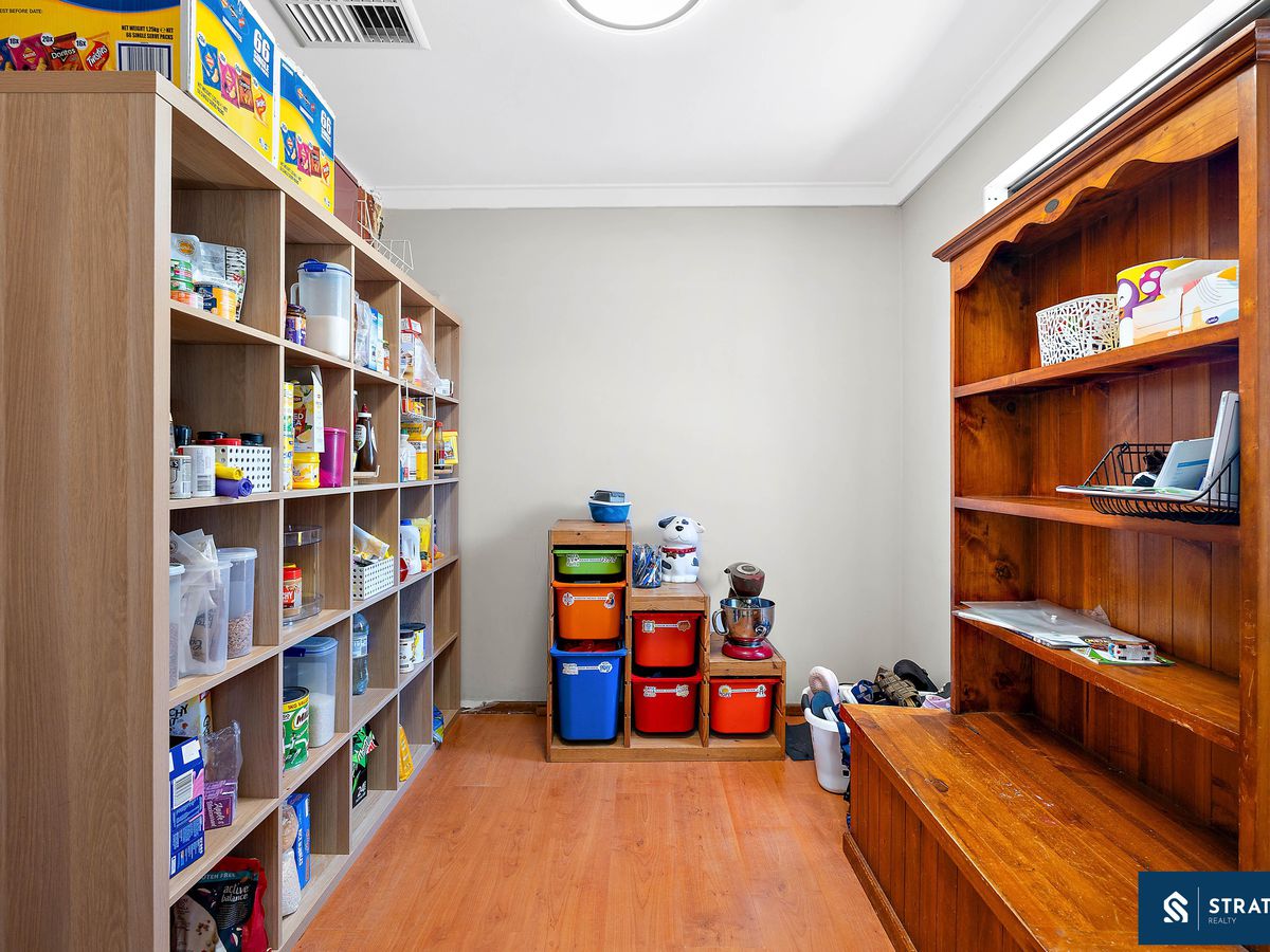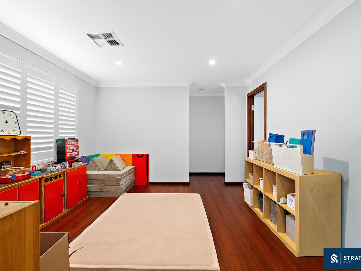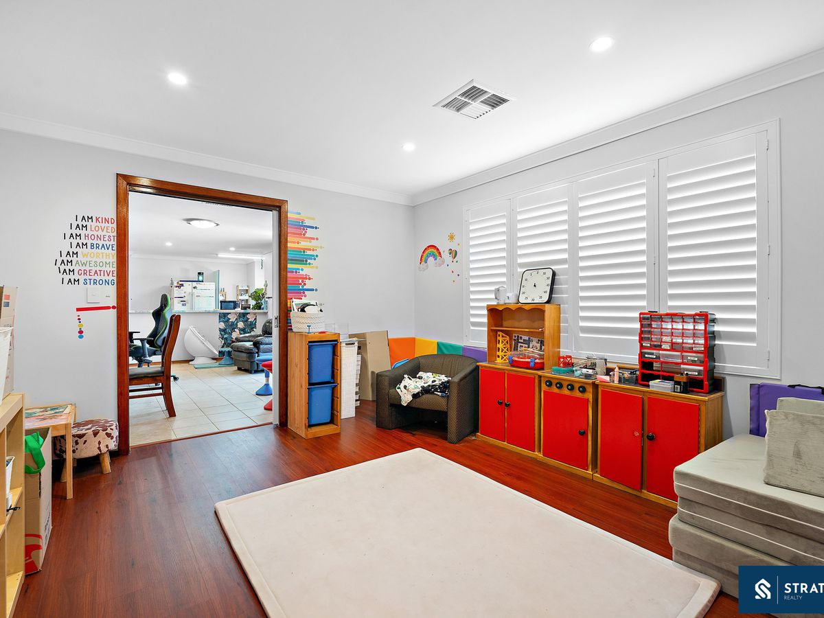 Inside, the home offers a generous and functional layout designed to suit family living. The main living area is well sized and features floorboards, creating a warm and inviting space for everyday relaxation. In addition, a second living area with hybrid flooring provides extra flexibility and could easily serve as a family room, theatre, or additional entertainment space.