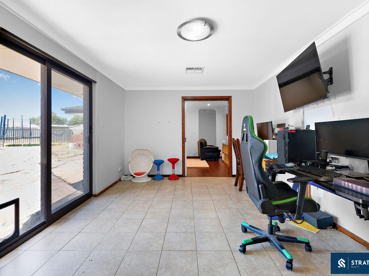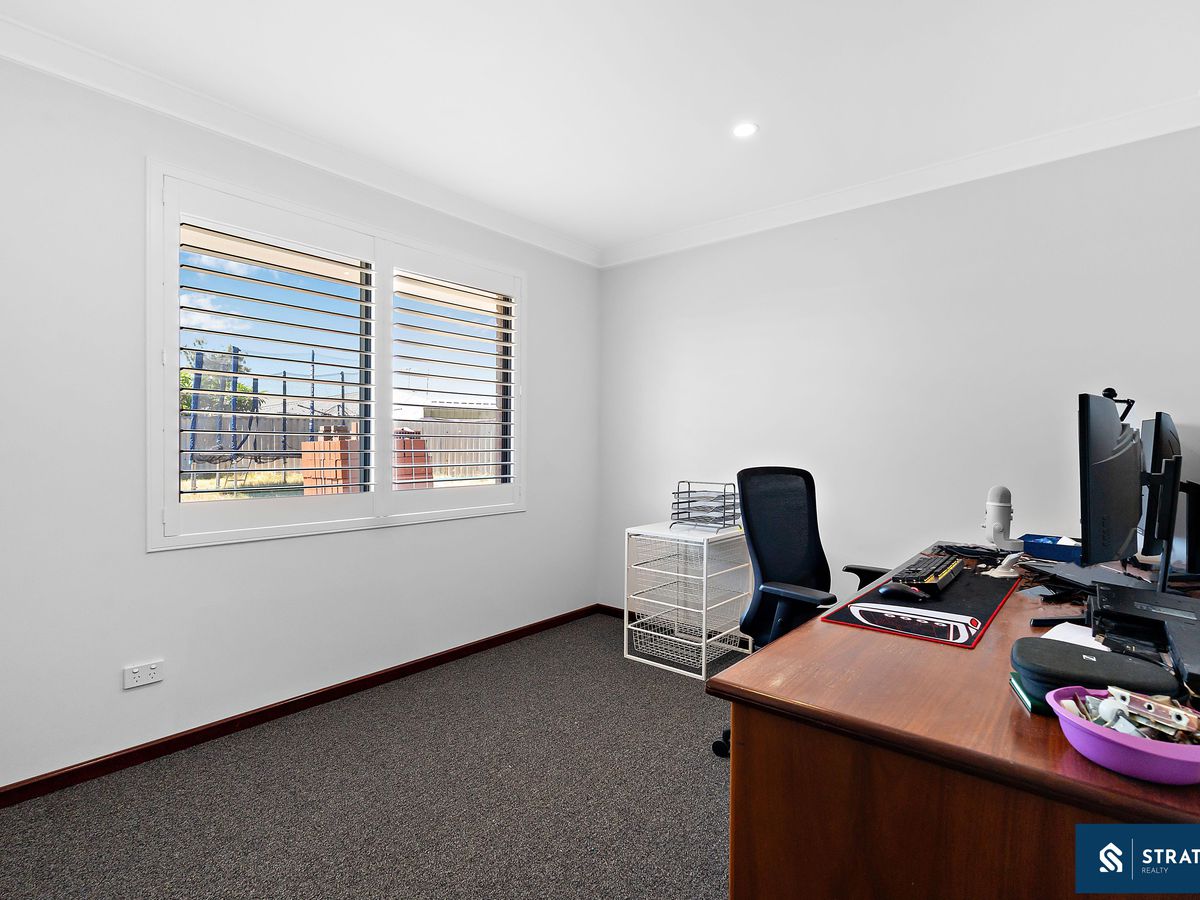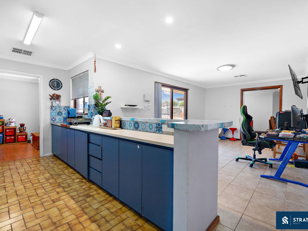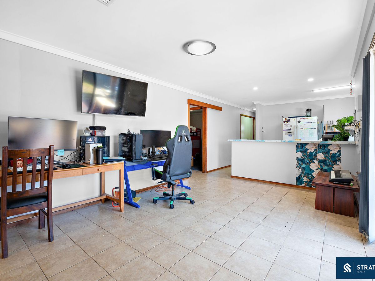 Inside, the home offers a generous and functional layout designed to suit family living. The main living area is well sized and features floorboards, creating a warm and inviting space for everyday relaxation. In addition, a second living area with hybrid flooring provides extra flexibility and could easily serve as a family room, theatre, or additional entertainment space.