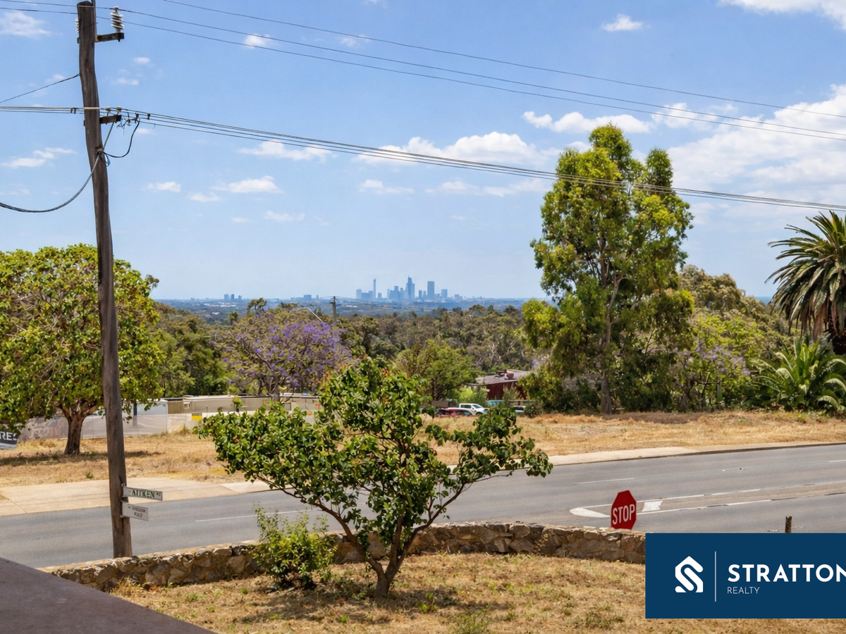 Sitting proudly on an elevated street frontage, the home features a welcoming covered porch that captures glimpses of the Perth city skyline.