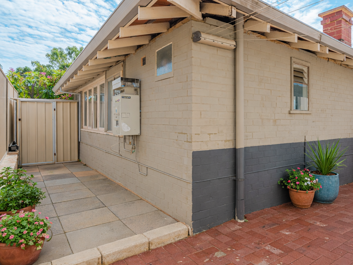 Moving outside, the home offers a patio area that has been fenced to define the outdoor living space for the existing dwelling while keeping the rear portion of the block clear and accessible for potential future development.