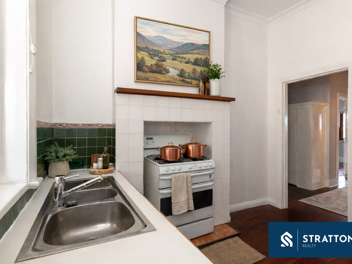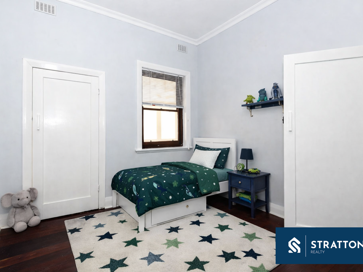 Sitting proudly on an elevated street frontage, the home features a welcoming covered porch that captures glimpses of the Perth city skyline.