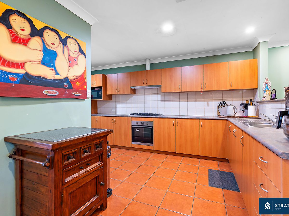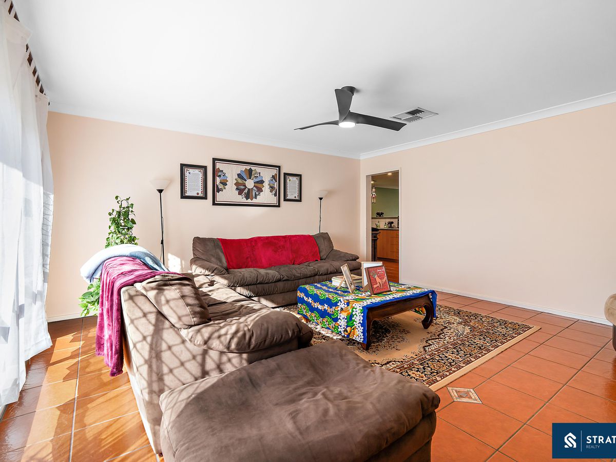 Inside, the home features tiled flooring throughout the main living areas, creating a practical and low-maintenance setting for everyday living. The front living area is well sized and complete with a ceiling fan, making it a comfortable space to relax. The kitchen is also well proportioned and offers plenty of cabinet space, a double sink, a 900mm gas cooktop, and a built-in pantry, making it ideal for family living and entertaining.