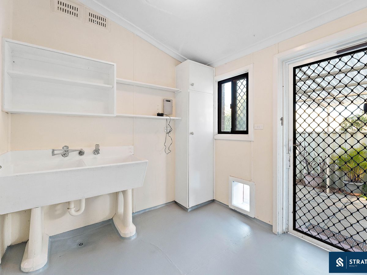 The bathroom includes both a shower and bathtub, along with a vanity offering ample storage. The laundry is well sized and practical, complete with a double sink and a separate toilet, with direct access to the backyard through a security screen door.