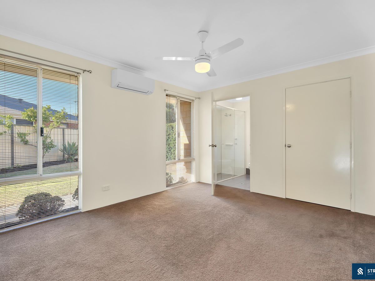 Inside, the home features four double-sized bedrooms, including a spacious master suite complete with a large walk-in robe and private ensuite with a double shower. Two of the secondary bedrooms are fitted with built-in robes, while the fourth bedroom offers flexibility to be used as a theatre room or an additional living area depending on your lifestyle needs. Split system air conditioning is installed in both the main living area and the master bedroom, ensuring year-round comfort.
