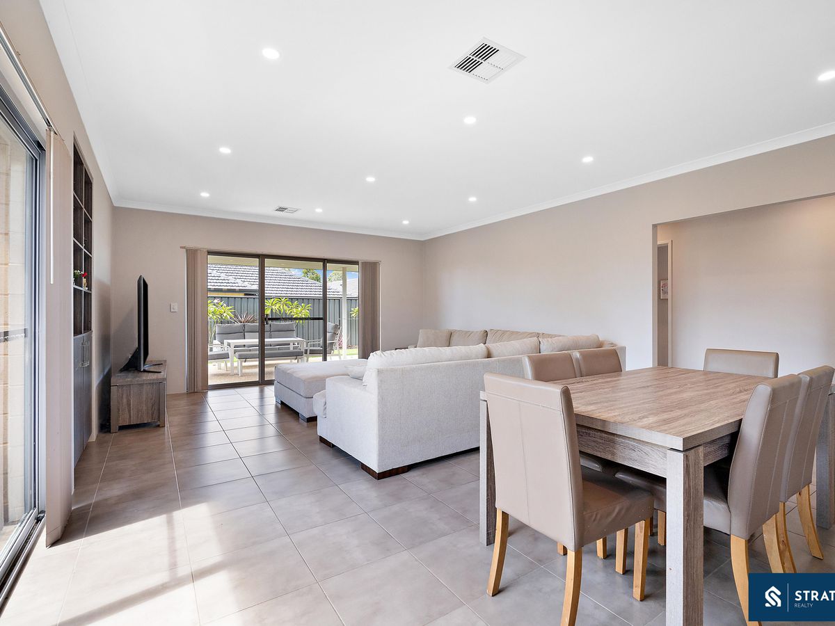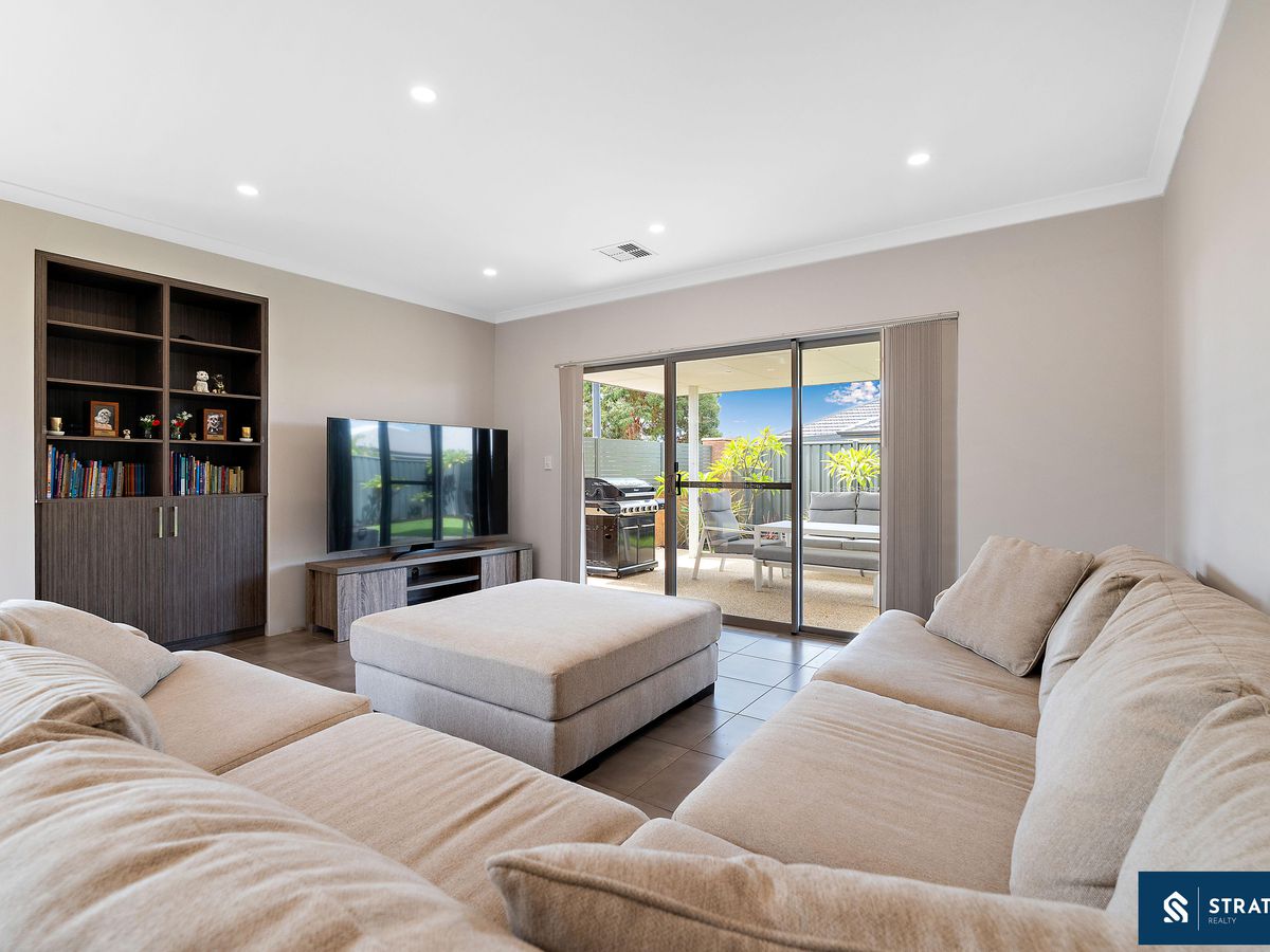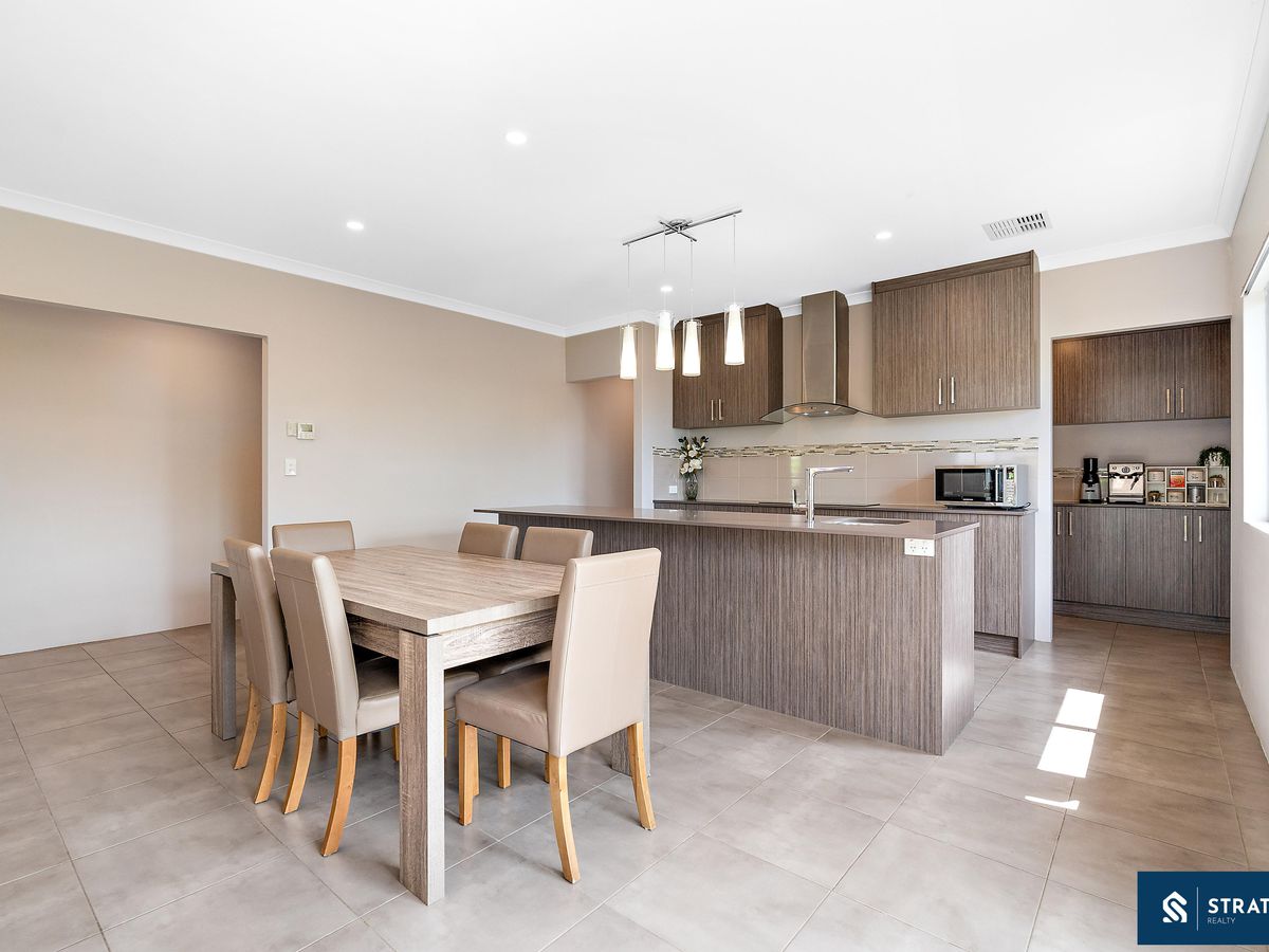 From the moment you step inside, you are welcomed by high ceilings in the main kitchen, meals, and living area, enhancing the sense of space and natural light. The home features tiled flooring throughout the main living zones, while a second well-sized living area with hybrid flooring provides flexibility for a theatre room, lounge, or additional family space.
