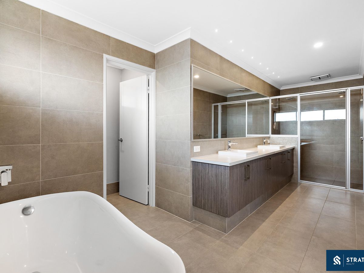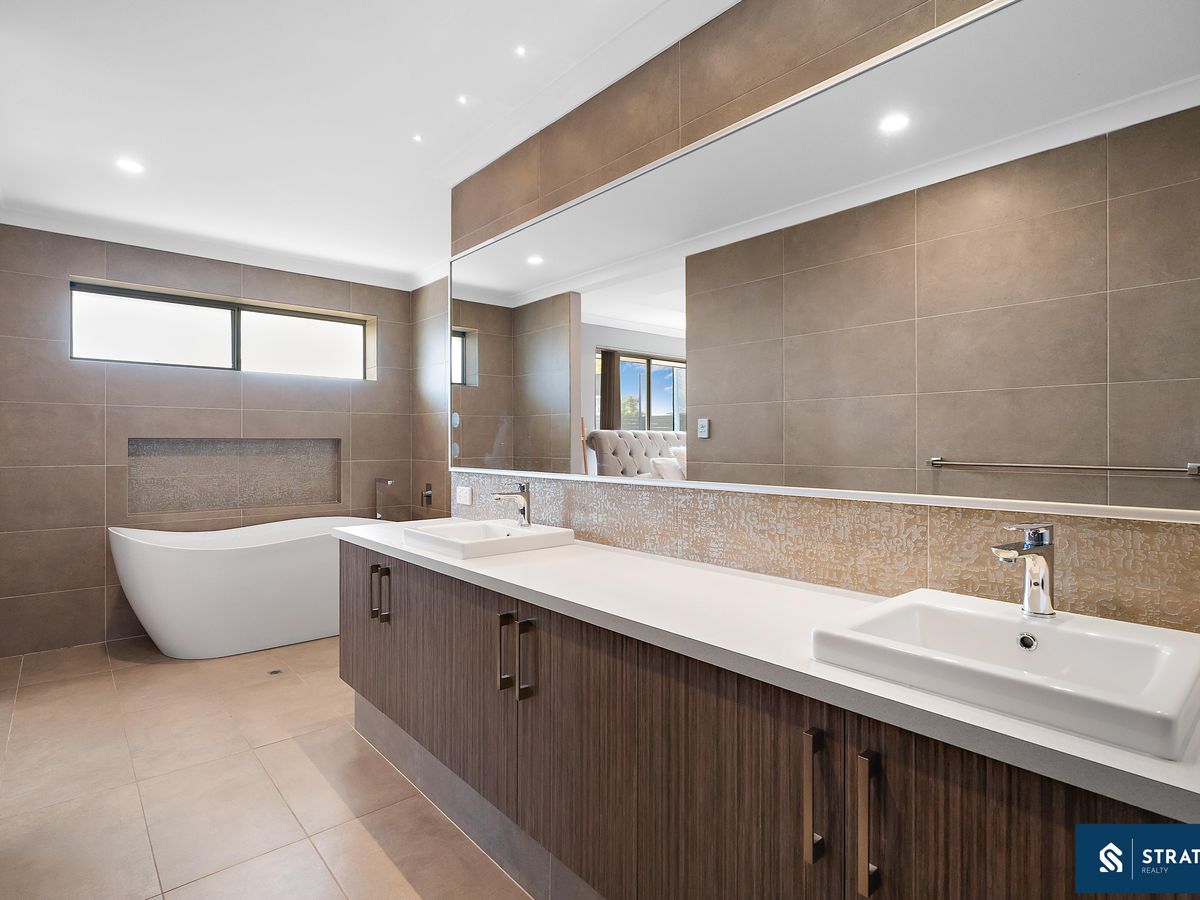 The master bedroom is well sized and features hybrid flooring, multiple built-in wardrobes, and a spacious ensuite complete with a his and hers vanity, large mirror, well-sized shower with dual shower heads on either side, a bath, and a toilet-creating a comfortable and functional private retreat. Bedroom 1 is also well sized with hybrid flooring, while Bedrooms 2, 3, and 4 are all well proportioned, complete with carpet flooring and double built-in wardrobes with mirrored doors.