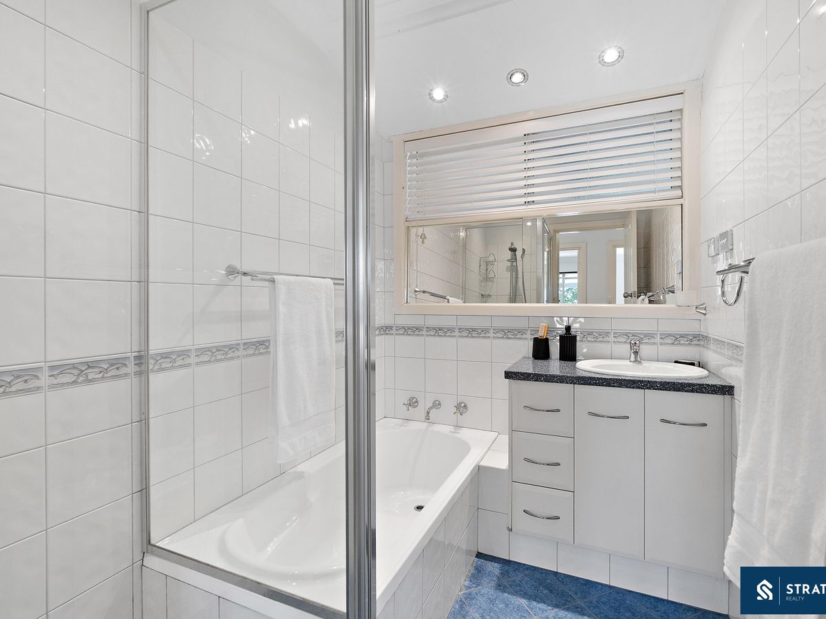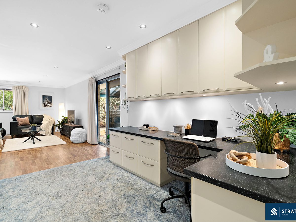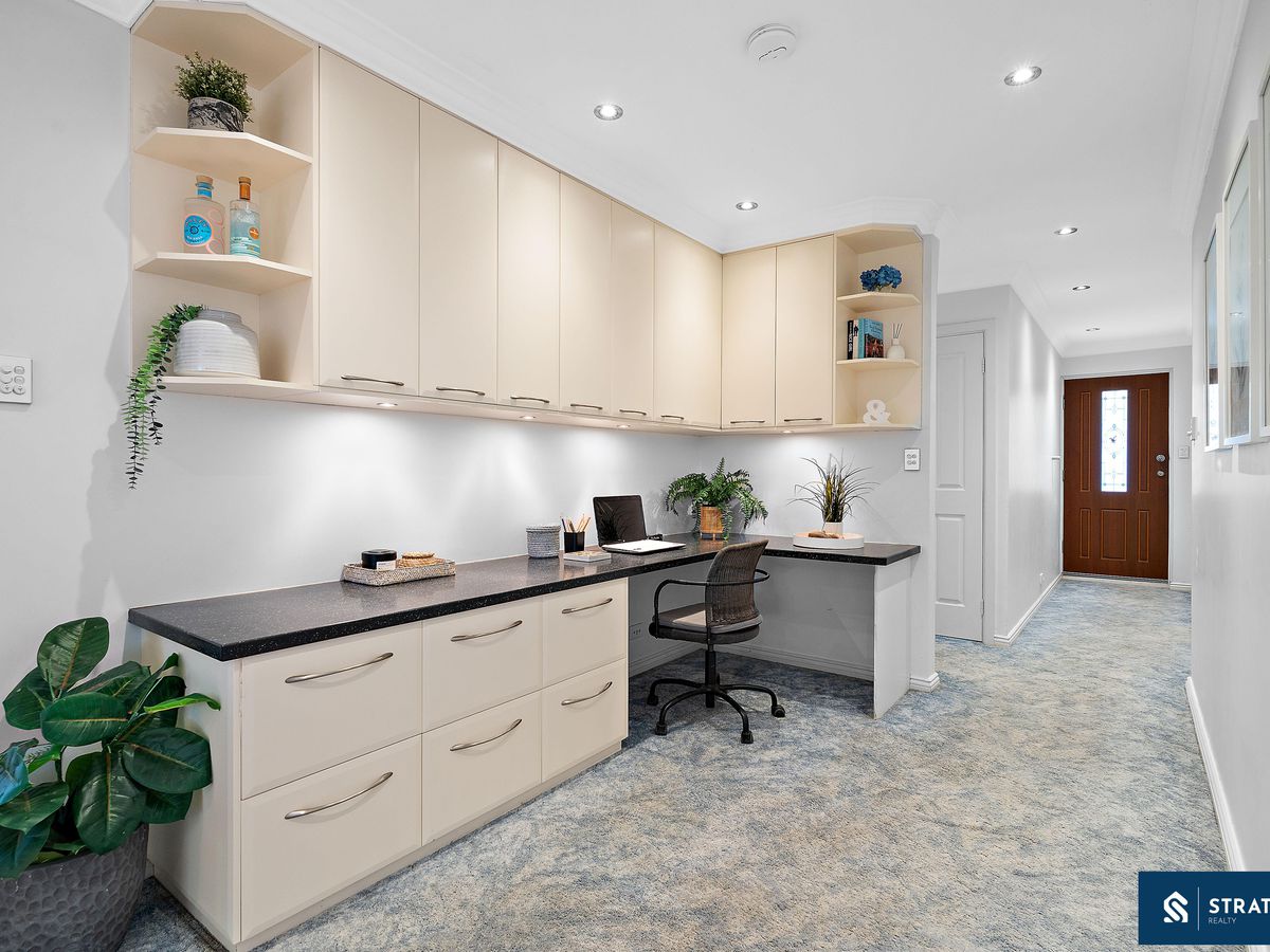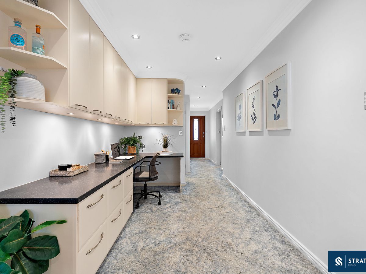 The bathroom is well-appointed with a shower, bathtub, and a toilet located next door for convenience. A storage cupboard in the hallway offers additional space for your belongings. A well-sized study or office with plenty of cabinet space provides a great spot for working from home or managing household tasks.